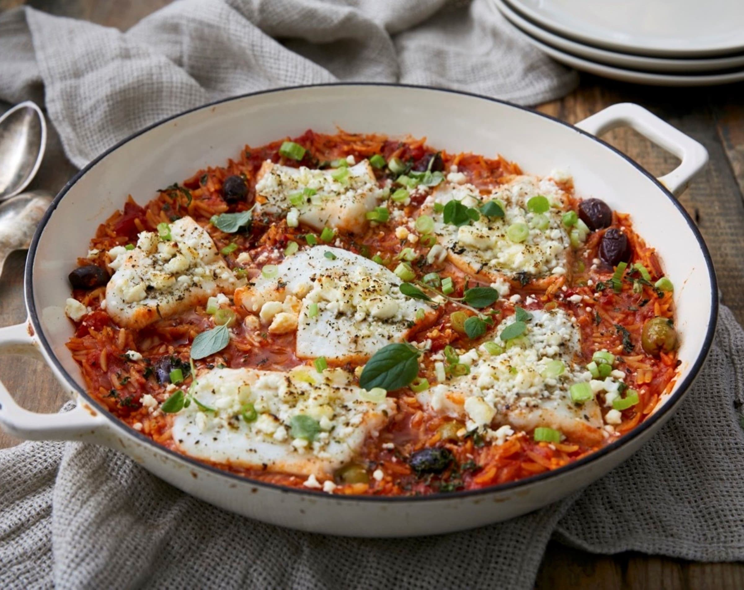 Baking dish, sturdy rimmed baking sheet, or ovenproof skillet