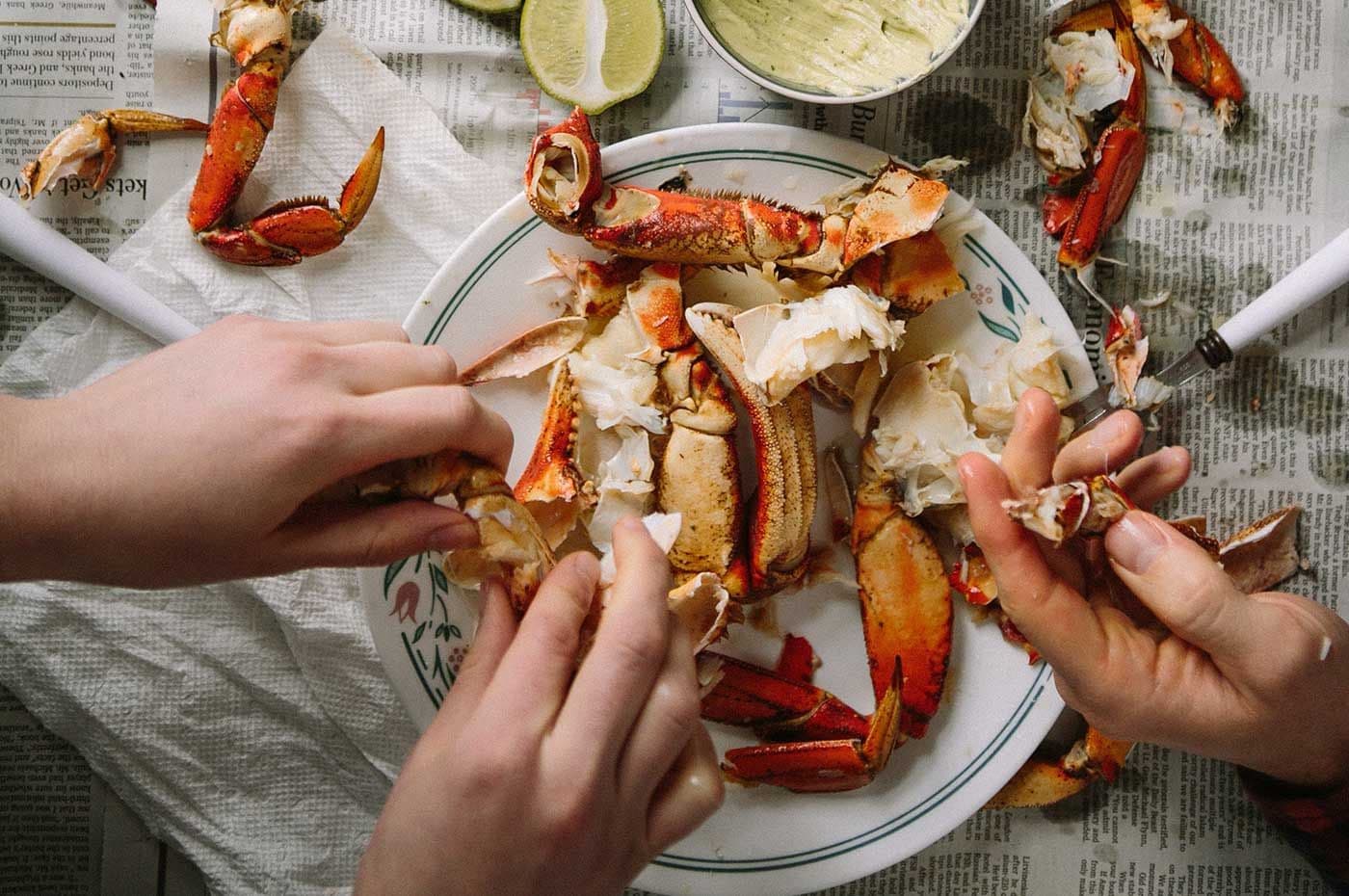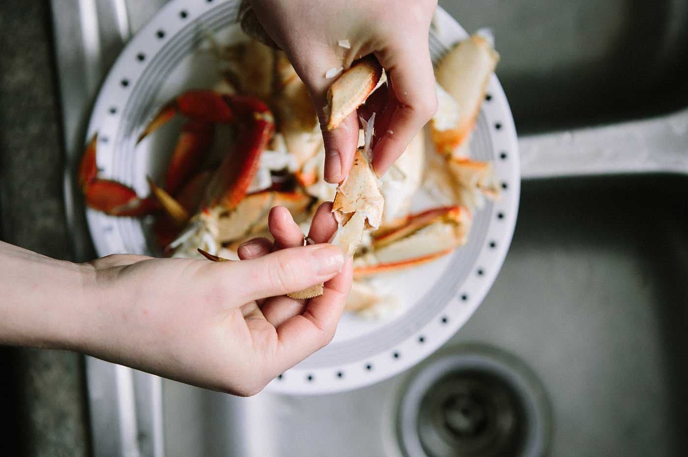Clean, strong hands can do most of the work of extracting crab meat, but kitchen scissors are great for splitting hard shells and metal nutcrackers, a wooden mallet, or a sturdy chef’s knife make easy work of getting at the succulent claw meat. Your little finger or a seafood pick or chopstick is great for getting at the knuckle meat.