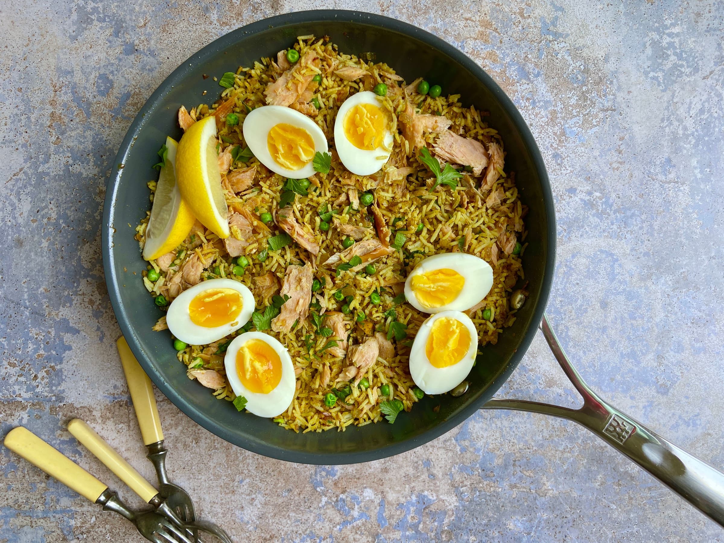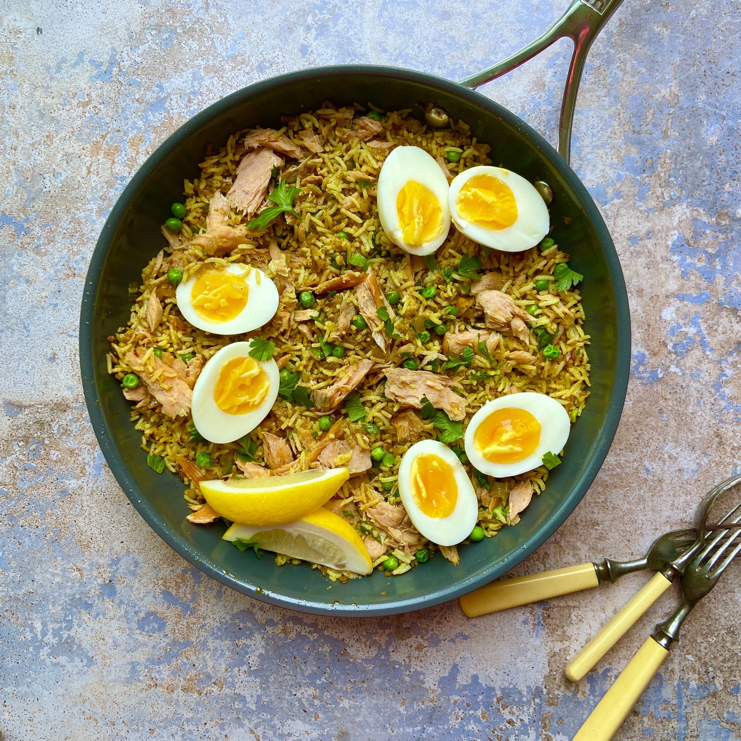 Kedgeree is based on an Indian curried rice and beans dish — khichuri — that was brought back to Great Britain during the early colonial occupation and adapted for western palates. The dish, which includes smoked fish, rice, and hard-cooked eggs, makes a hearty breakfast or and a simple, quick supper. It’s a great way to repurpose rice and fish leftover from a previous meal.