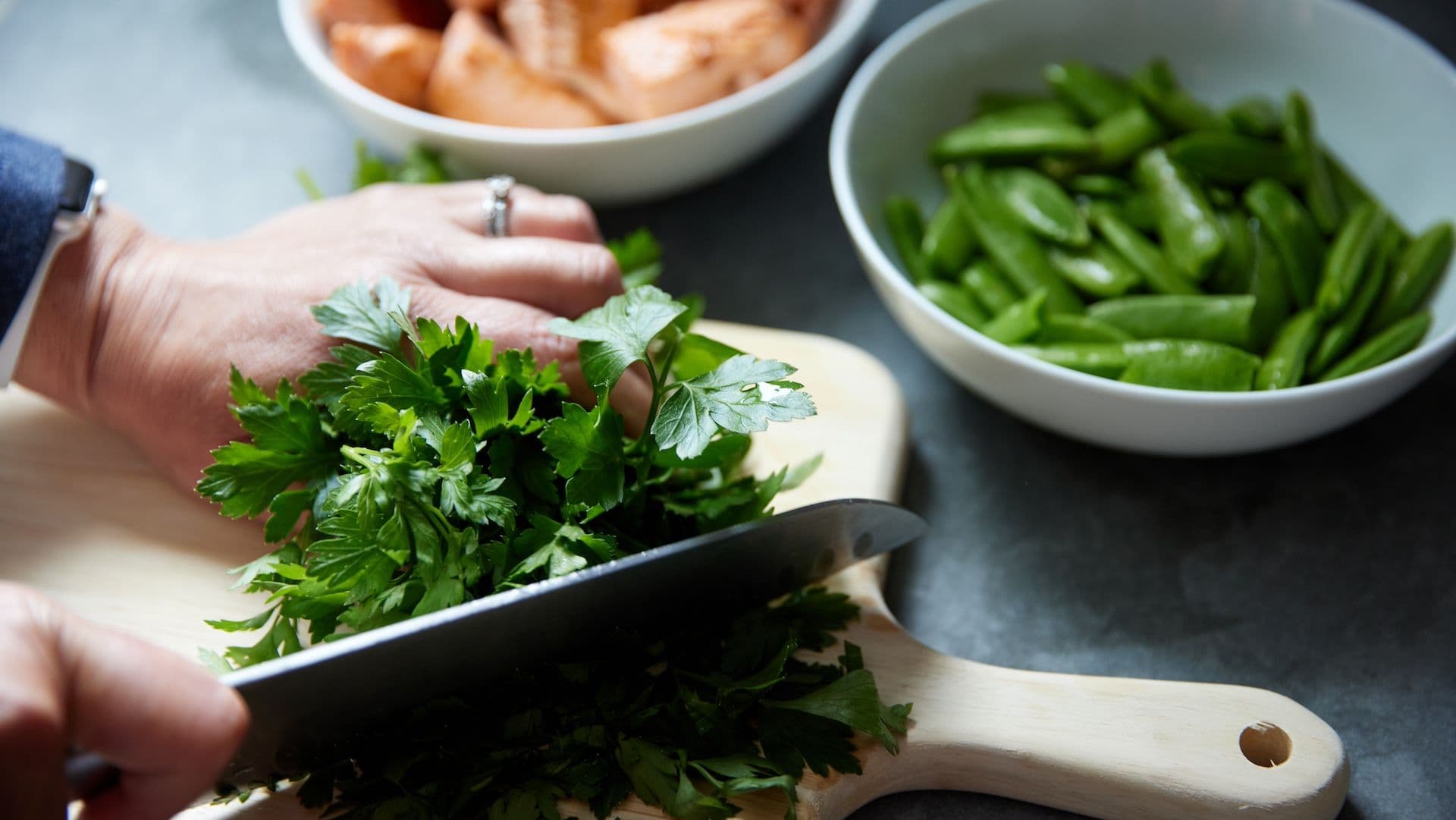 Omega-3 rich albacore tuna is lightly seared and dressed with salmoriglio — a southern Italian sauce flavored with heart-healthy olive oil, garlic, lemons, and herbs.