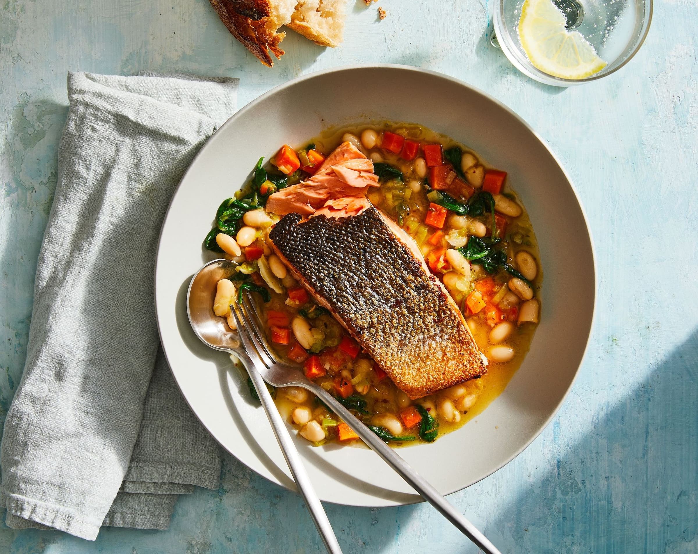 Heart-Healthy Highlight: White beans are full of fiber and plant-based protein that help lower LDL cholesterol. Paired with wild salmon, this dish is a nutritional powerhouse.