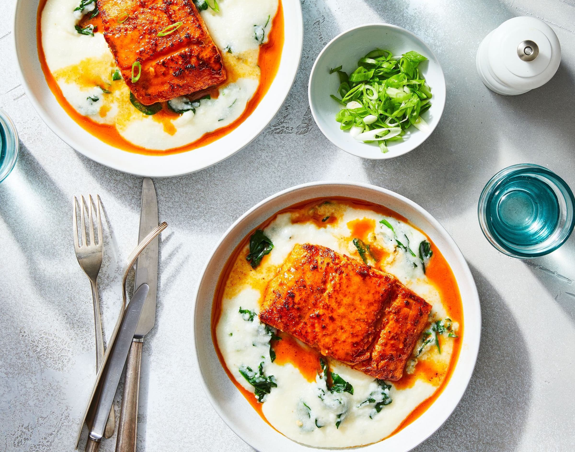 Creole-Spiced White Fish with Cheesy Grits