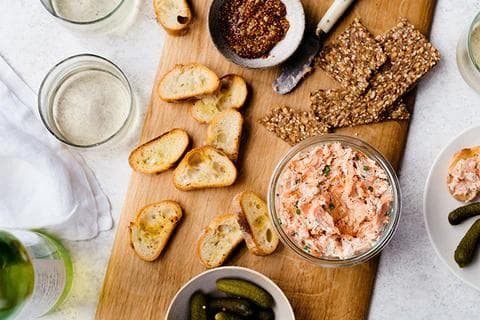 Our take on the classic rillettes uses butter-basted king salmon and, if you have it, hot smoked salmon. It gets better the longer it sits in the fridge, so prepare it ahead for convenience (if you can make it last). Eat it with a spoon, or a shovel for all we care. Just make sure to eat it.
