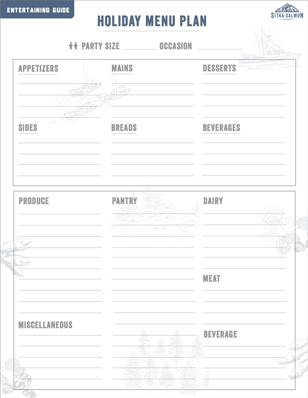 - Pick menu items that match your skills, stick to a budget, and ensure your needed ingredients are available locally. Avoid overambition and be honest about your time commitments! If you work 13 hours a day, making four pies might be idealistic. However, if you want to make four pies, pivot and plan in advance (see below). Don’t shy away from a challenge if you can handle it, and try out our printable Menu Plan Template (below):