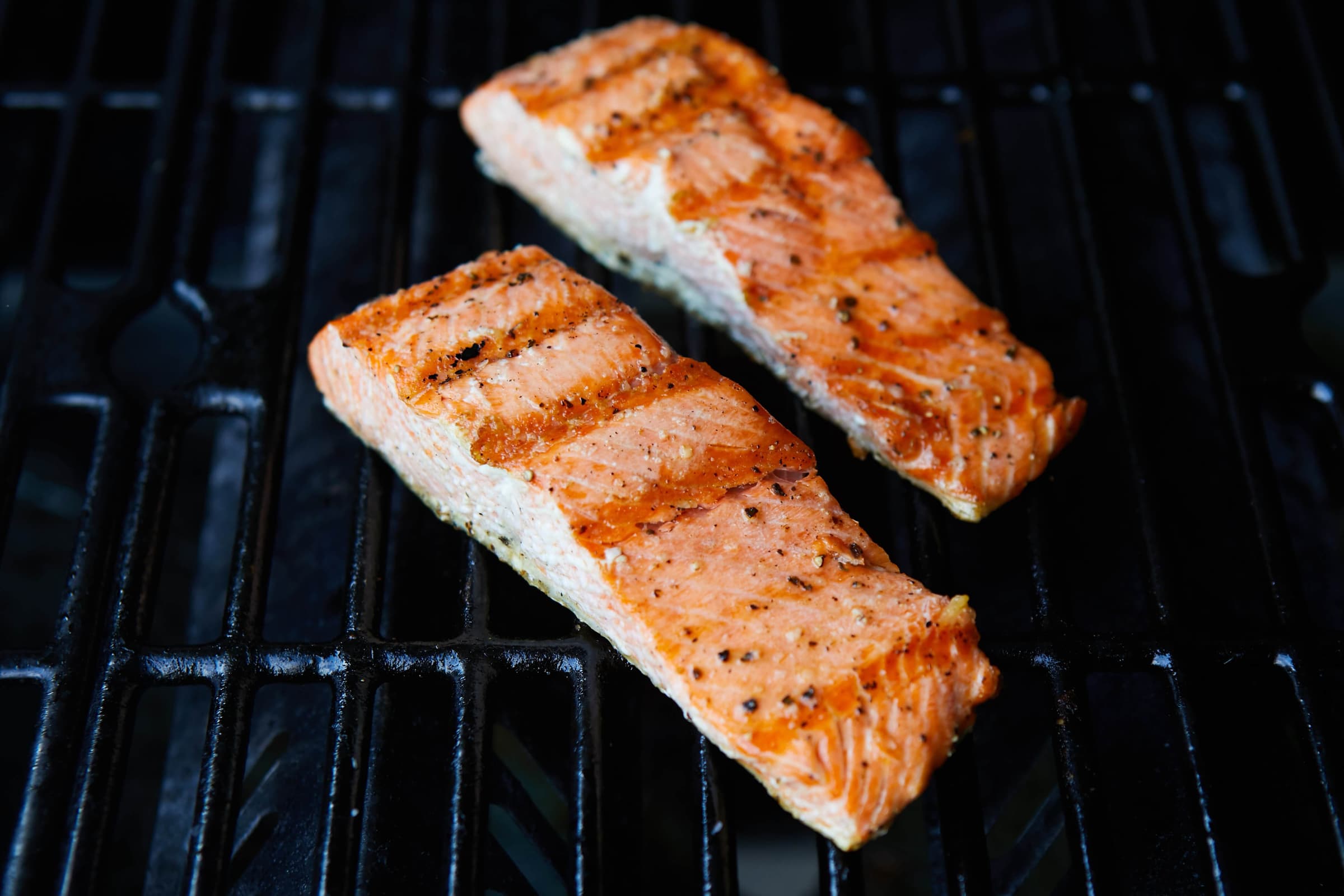 Timing varies by thickness of the fillet. For thinner fillets like sockeye or pieces cut closer to the tail, cook it mostly on the skin side, then flip and cook for a minute or less to avoid overcooking. For thicker pieces, you can cook equally on both sides. If you’re using a glaze — especially one with sugar, brush the fish after it’s almost cooked and has released from the grill. At this point, you can flip the fish to glaze both sides and turn once or twice more. Just be careful not to overhandle the fish or you’ll increase the chances of breaking apart.