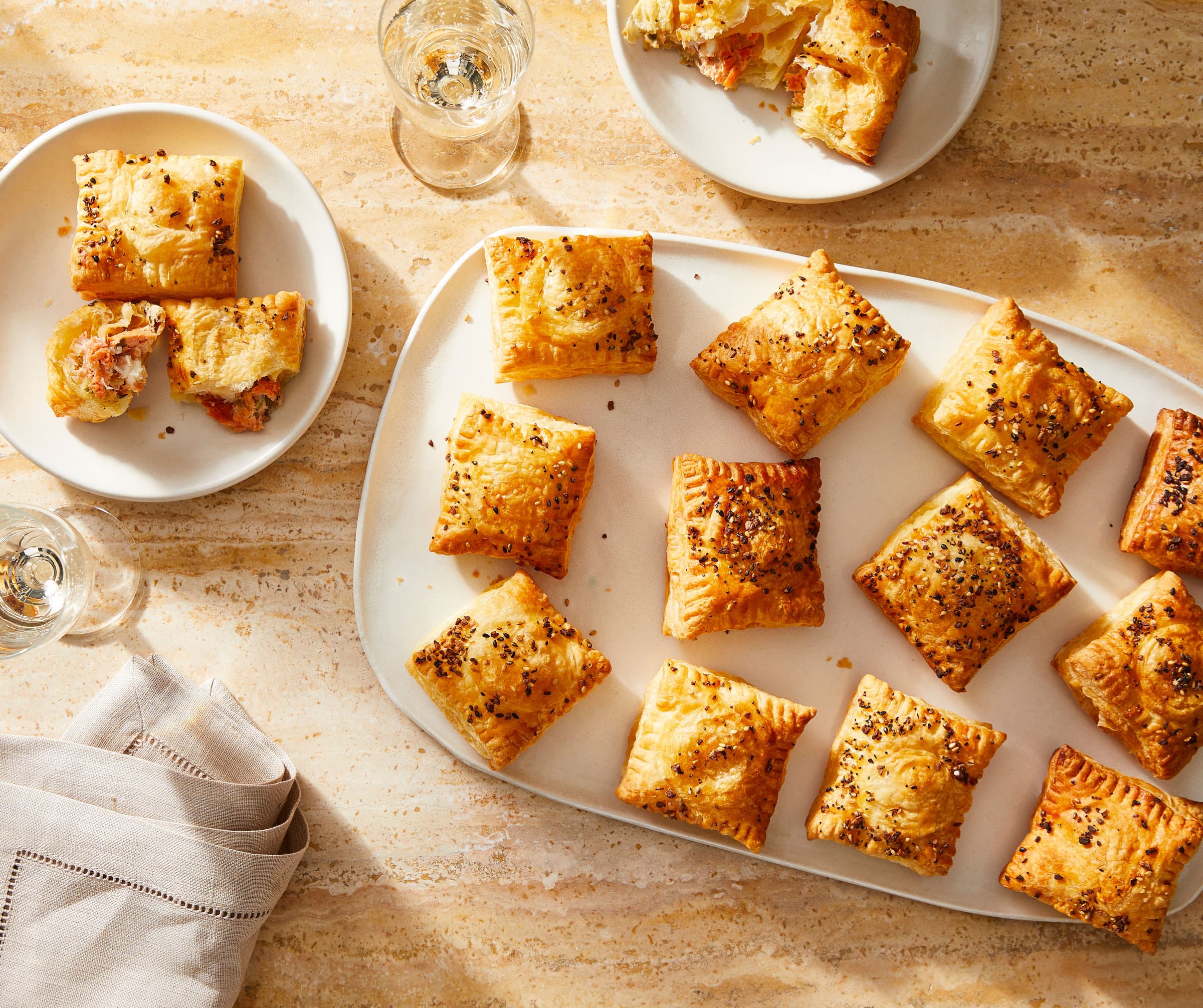 For canapes and finger foods, look for small bites that deliver big flavor. Smoked salmon, ikura (salmon caviar), and dungeness crab all pack loads of flavor.