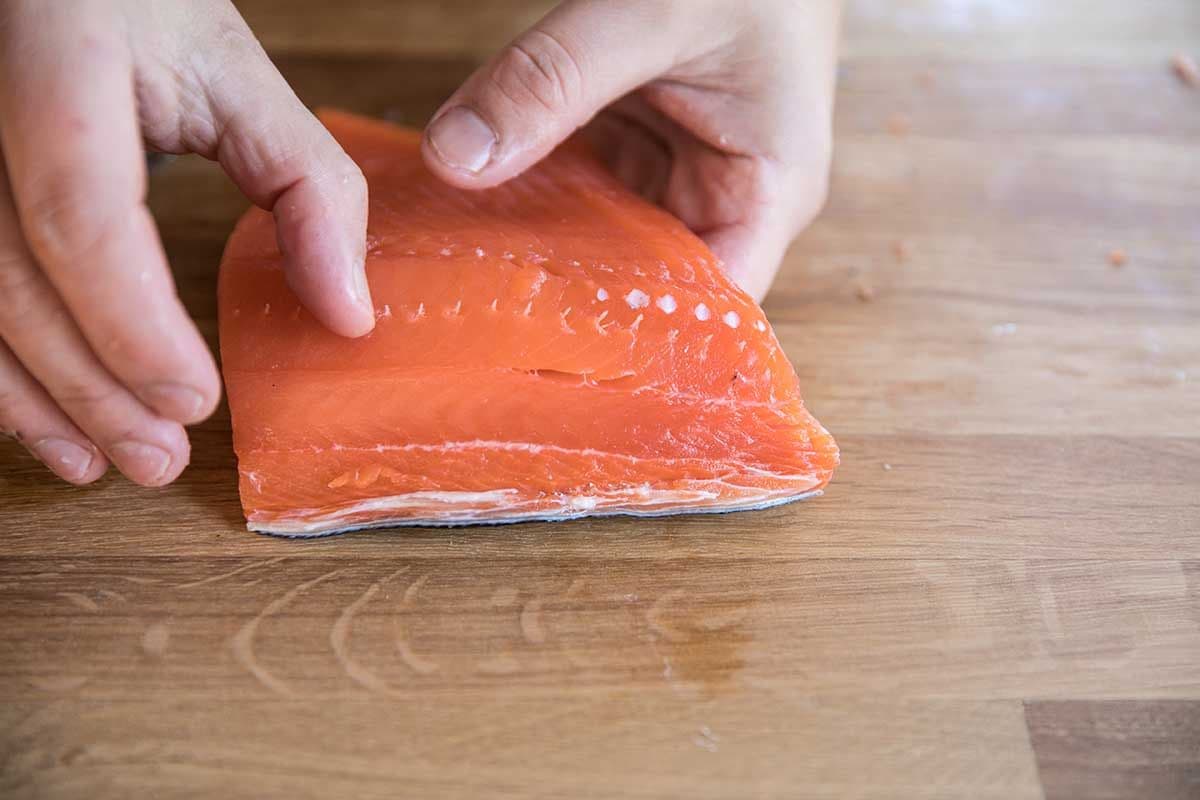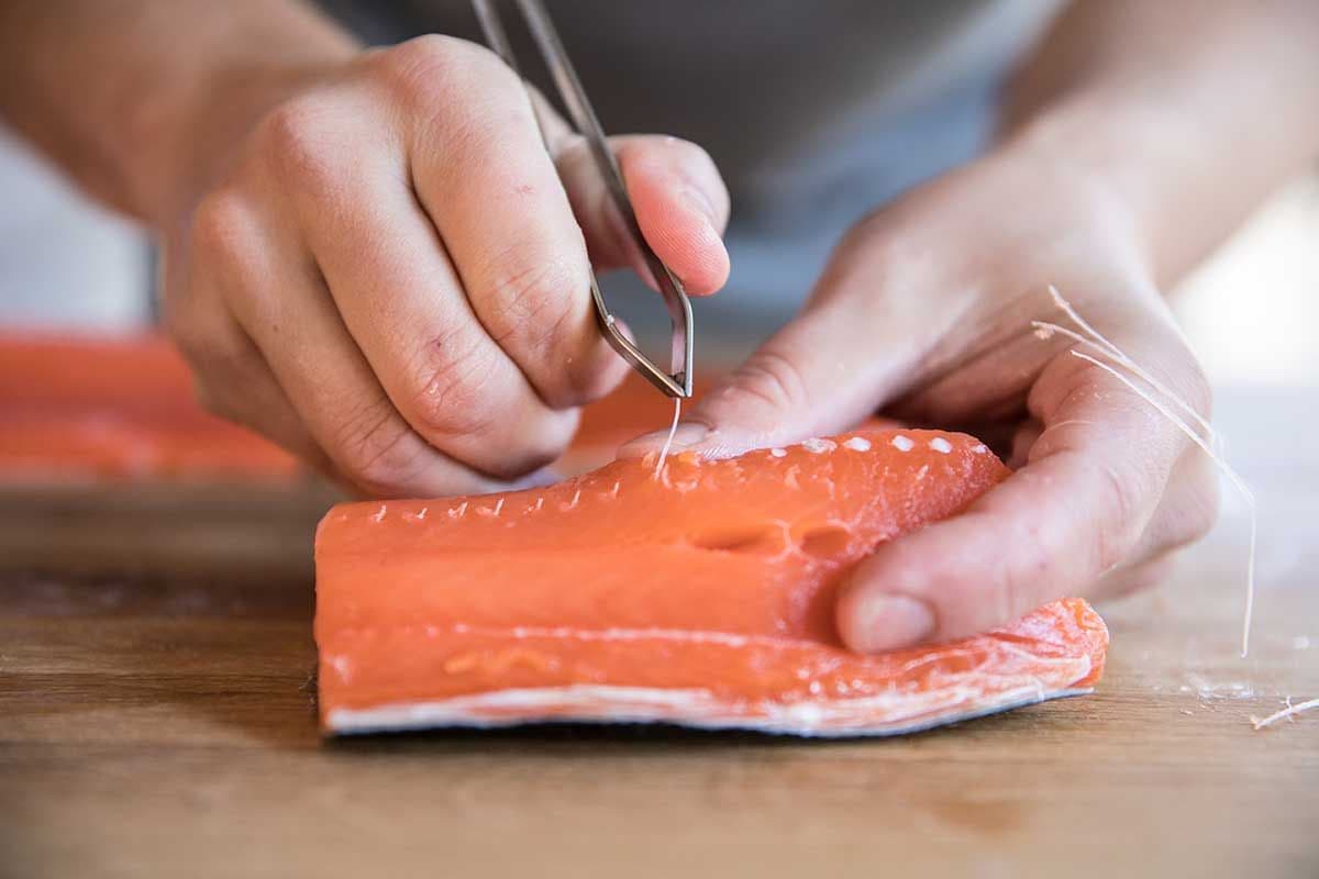 Below we've included a 30-second video and pictorial guide on how you can easily remove the pin bones. Note that tail cuts have fewer pin bones, and will gravitate towards the wider end of the fillet. If removing your pin bones seems like too much of a chore, simply push them to the side while you eat. Enjoy!