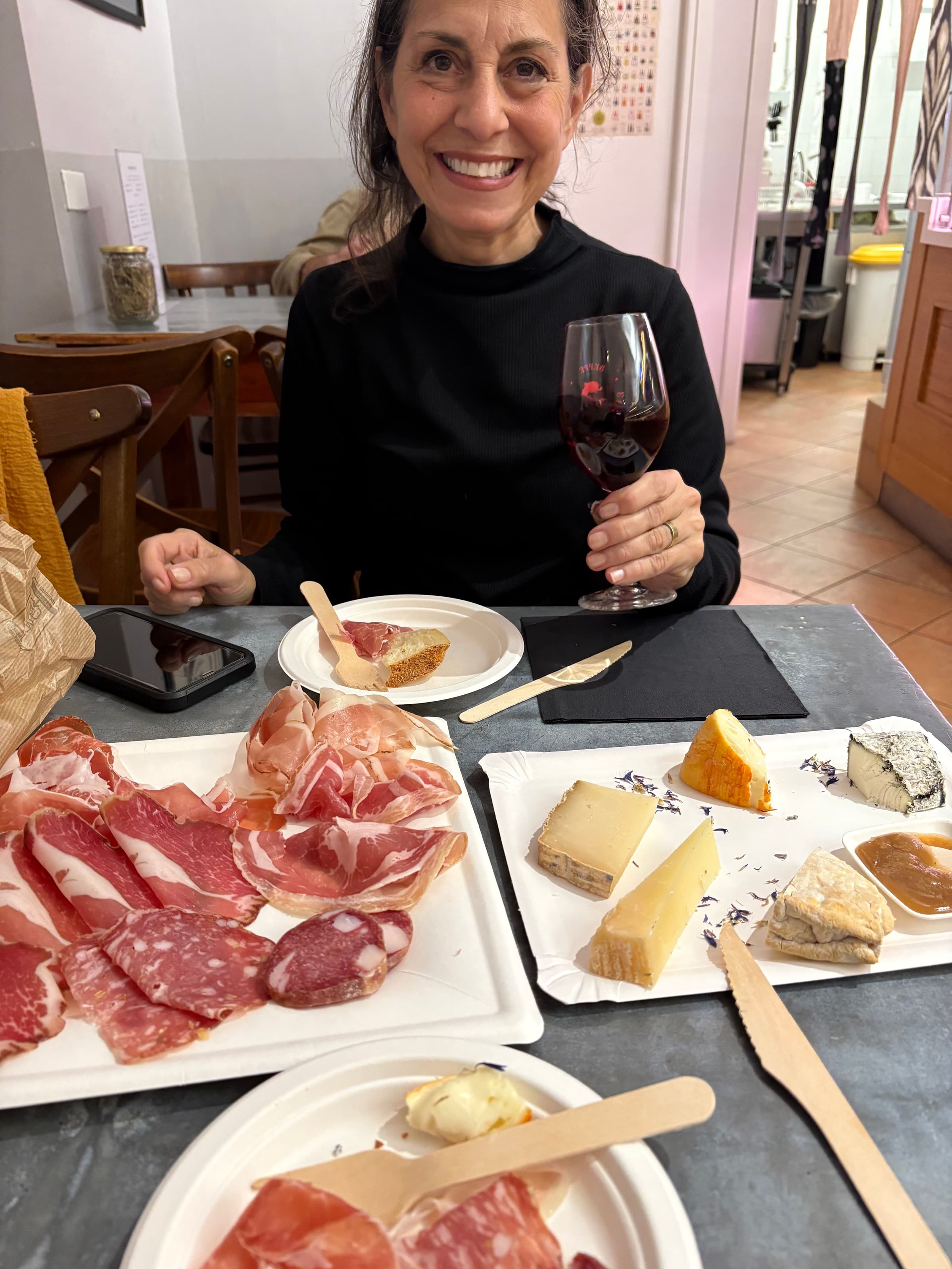 Rome greets you like an old friend — chaotic, beautiful, and always with something delicious around every corner. My first stop? Beppe and His Cheeses, a salumeria tucked in a quiet side street not far from the Trevi Fountain, for a plate of hand-selected cured meats and exquisite cheeses, paired with the perfect glass of red wine. It was more meat than I’ve had in six months, but it was delicious and worth the temporary spike in my cholesterol.