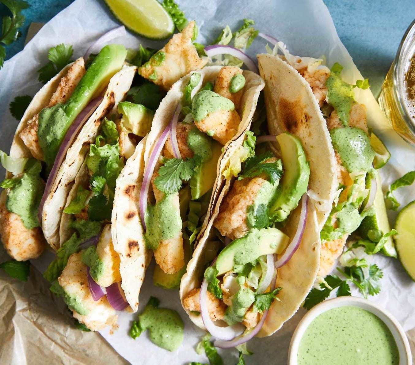 - Crispy Fish Tacos with Creamy Jalapeño-Cilantro Hot Sauce Fresh jalapeños, scallions, cilantro, and a touch of mayo are blended to create a Peruvian-style hot sauce — a perfect tart and spicy condiment for these crispy fried fish tacos.