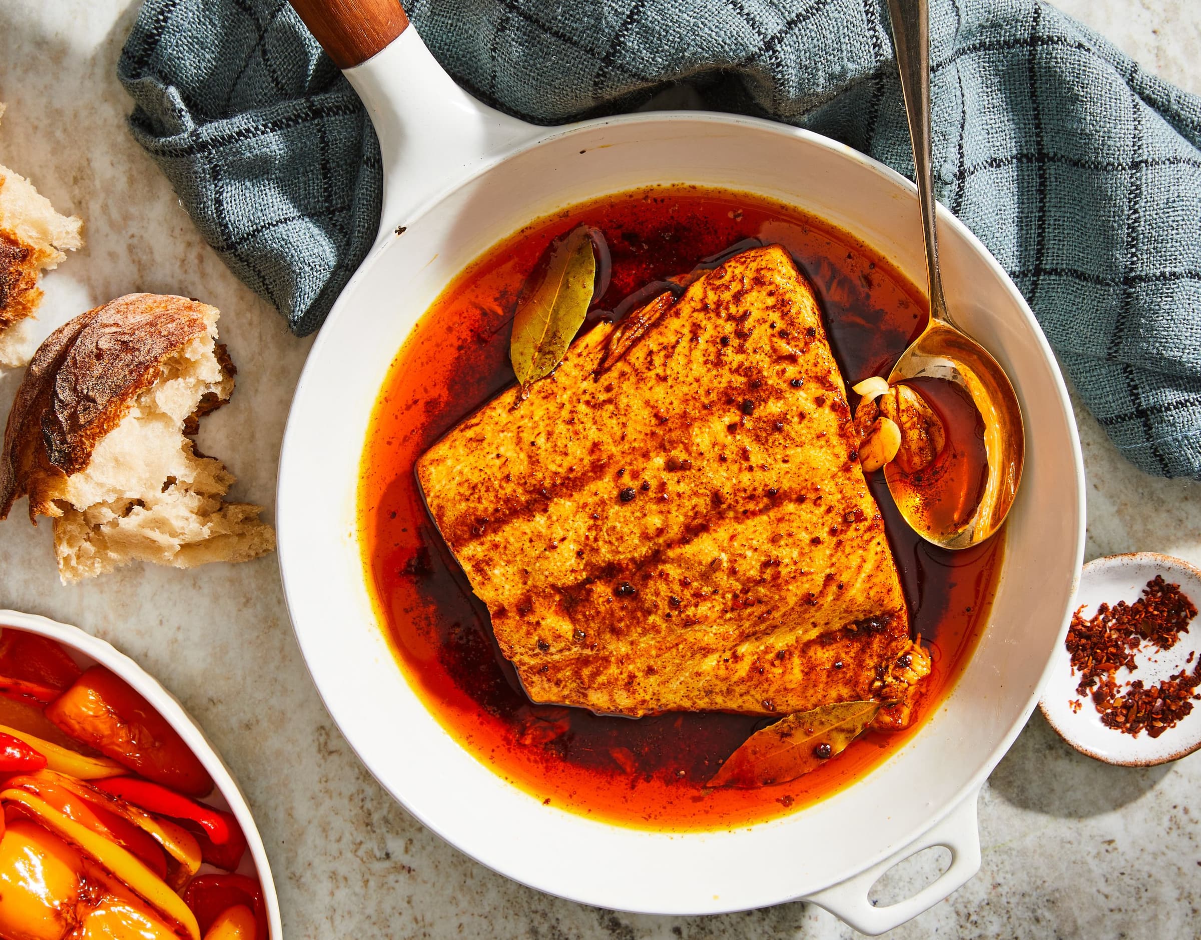 - Oven-Poached Salmon with Turkish Spices makes use of three types of peppers: sweet paprika, Aleppo pepper flakes, and sautéed mini sweet bell peppers.
