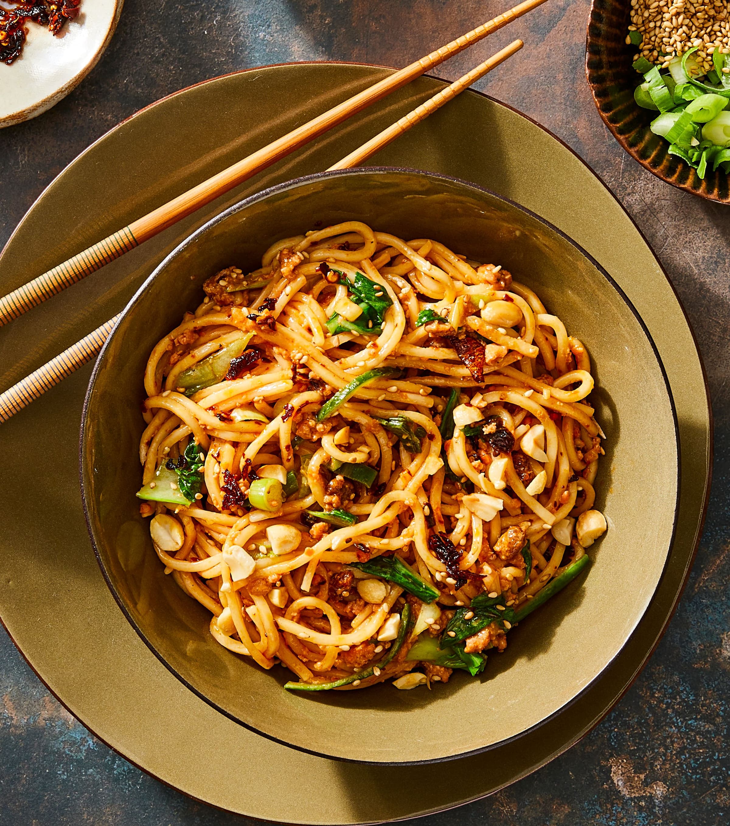 - Sichuan cuisine uses dried red chiles in great abundance and is characteristically quite spicy. This spicy Seafood Dan Dan Noodles recipe uses pre-made chili crisp as part of the sauce. Available at Asian grocers and many supermarkets, chili crisp is a condiment that includes hot chiles, garlic, shallots, oil, and spices like cumin, star anise, and Sichuan peppercorns.