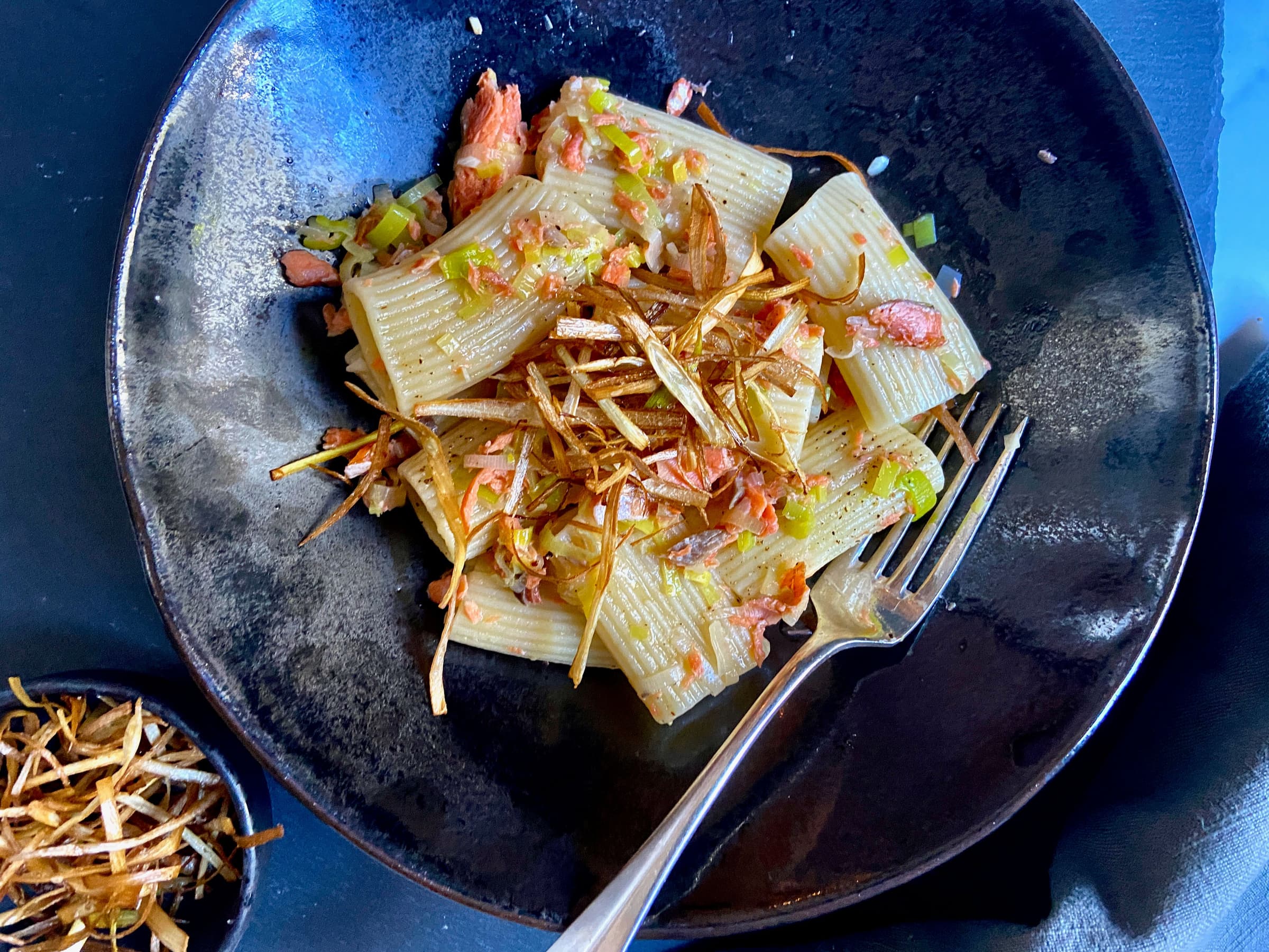 Paccheri with Smoked Salmon and Frizzled Leeks