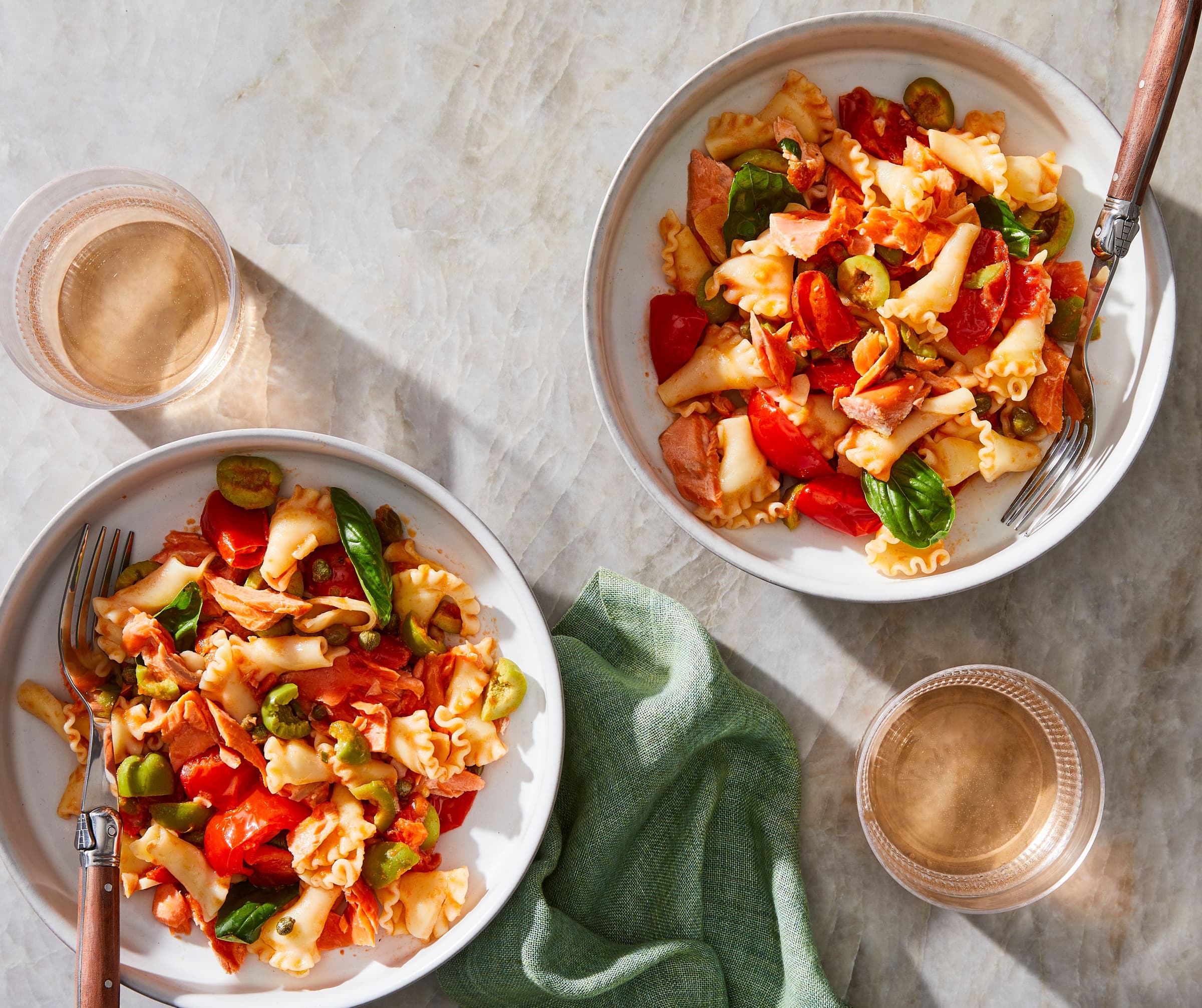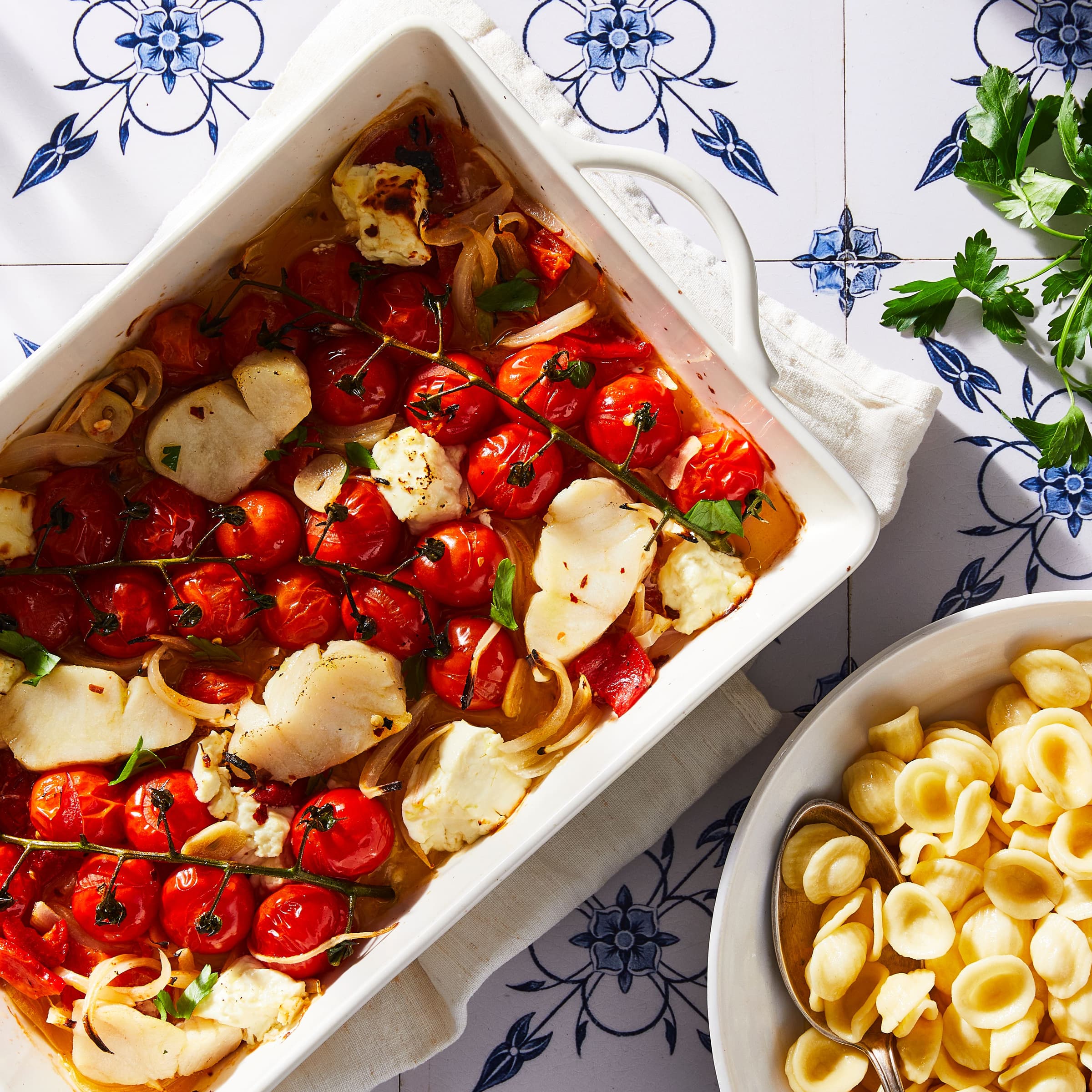 It’s understandable why baked feta and tomato pasta went viral on Instagram and TikTok — it’s so yummy! We’ve gilded the lily by adding wild-caught seafood to the baking dish for a sumptuous hit of lean protein. The feta and juices from the tomatoes and fish combine to make a luscious sauce full of flavor but with few ingredients.