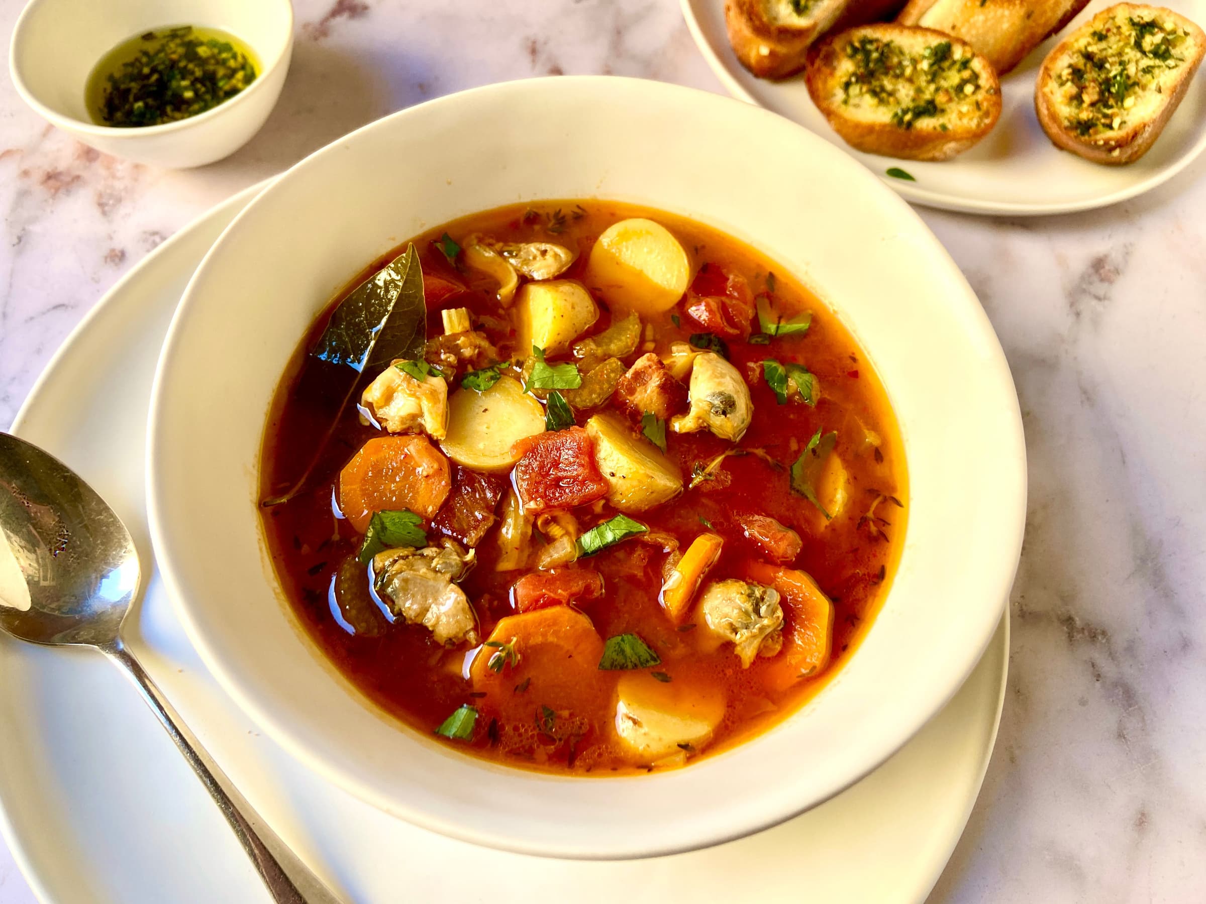 Light and brothy with just a hint of tomato, some purists might not even consider Manhattan clam chowder real chowder. Wherever you stand on the issue, whether you’re team Manhattan or team New England — or even team Rhode Island which is neither tomato-y nor creamy — this chowder is undeniably delicious. Plus you can serve it with crusty garlic bread for full effect.