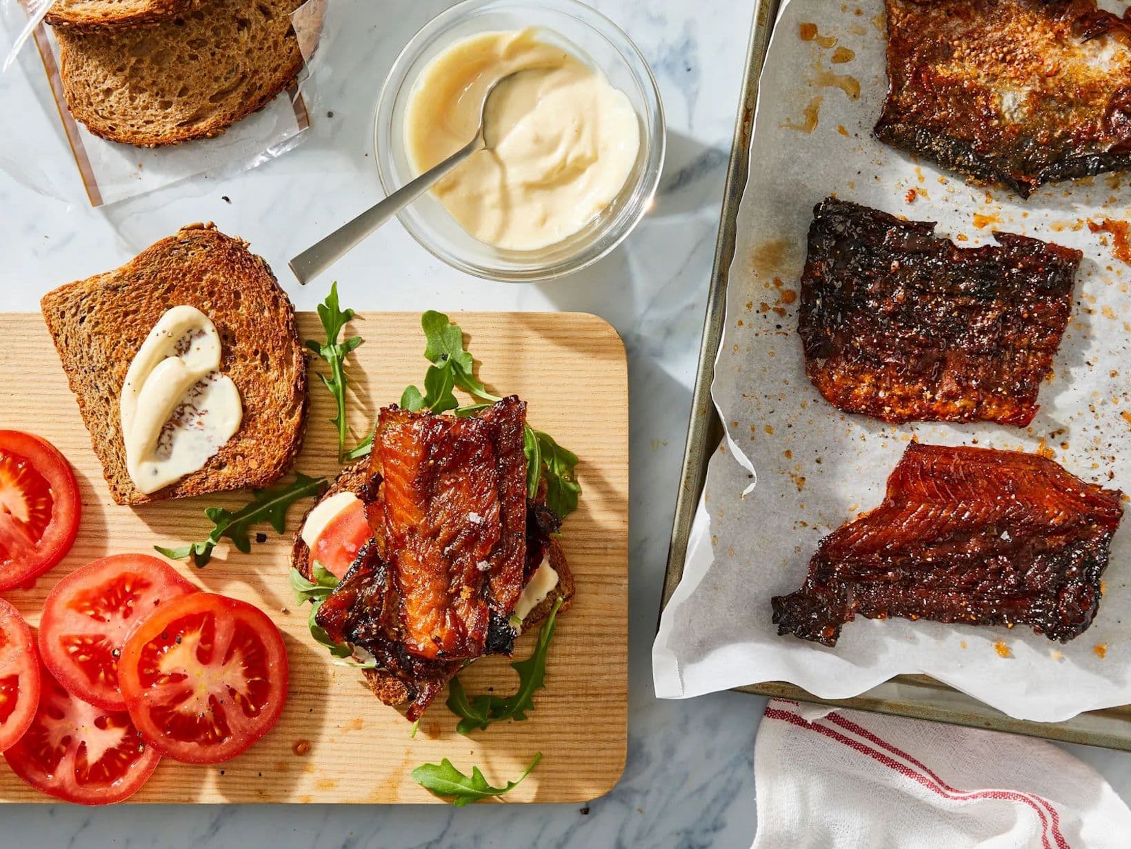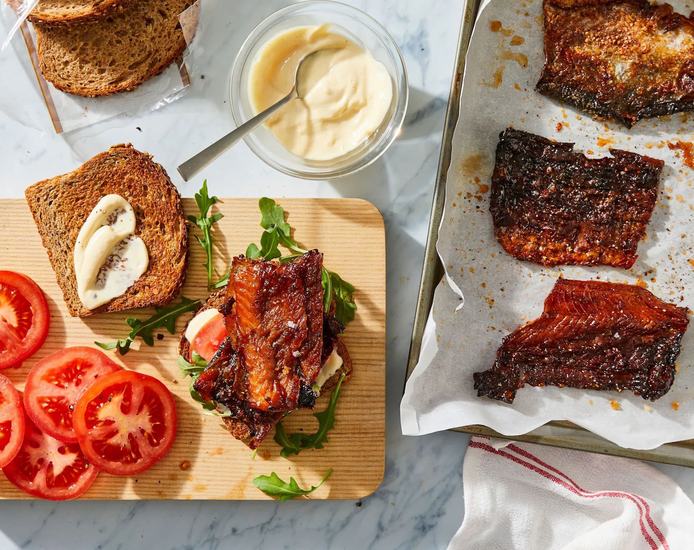 We can practice tip-to-tail eating in our own kitchens using the amazing seafood in our subscription boxes. Crab and shrimp shells make great seafood stock, but did you know that you could infuse butter with them? Crush them up and simmer gently in lots of butter, then strain out the bits and chill until firm. Spread some onto crusty bread or spoon into risotto or pasta. Divine! Salmon skin becomes sweet black pepper “bacon” by sprinkling with brown sugar, black pepper, and salt and baking until crispy for a stellar bar snack!