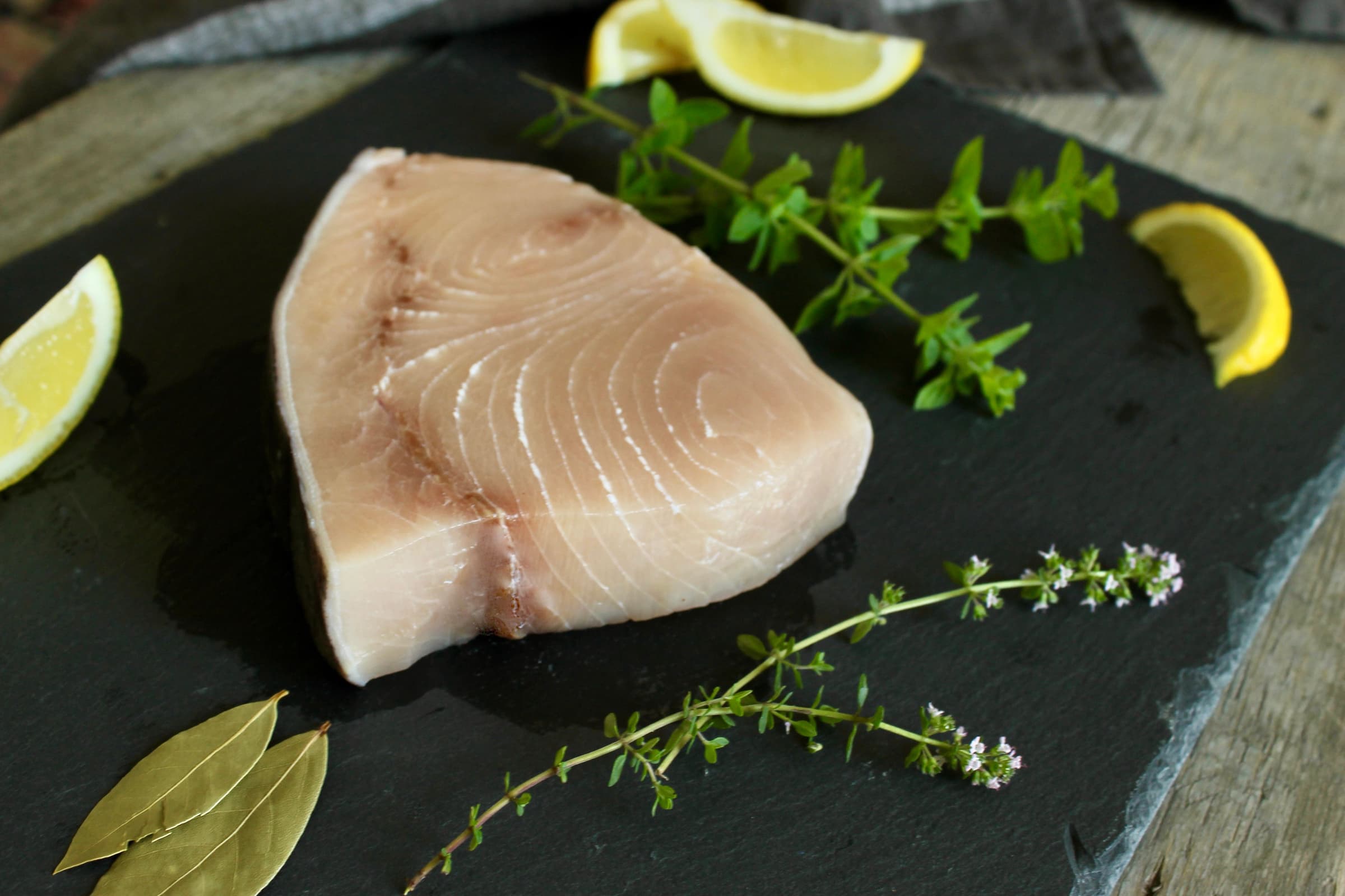 Rich and meaty swordfish is full of essential nutrients including selenium, vitamin D, and more omega-3 fatty acids than albacore. It has a buttery sweet, almost nutty flavor, with large tight flakes that remain intact after cooking. The texture is closer to pork loin than it is to other white fish. Swordfish is best cooked to about 130°F (medium) on an instant read thermometer, then left to rest 5 minutes before serving. But personal preference can dictate more or less cooking time.
