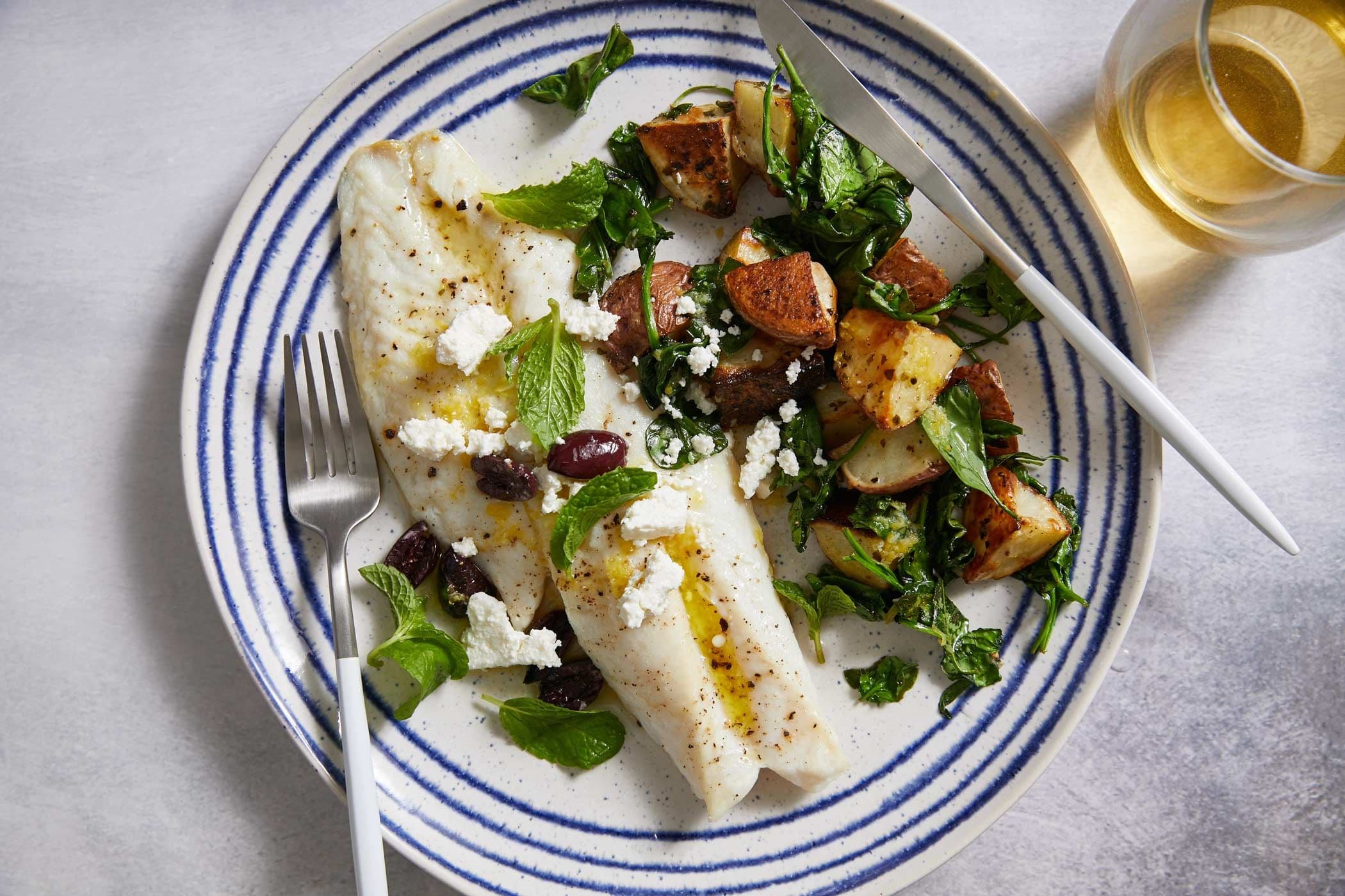 Pacific cod is especially lean. It has a mild flavor with delicate texture and medium flakes after cooking. It’s a bit fragile in a skillet, making nonstick the obvious choice of cooking vessel. Cod tends to release a lot of liquid in the pan which glues it to the surface, making flipping a fillet intact almost impossible. A liberal sprinkling of salt 10 minutes before cooking will firm up the flesh and draw out excess moisture, making it easier to pan-sear. Be sure to rinse and pat dry before adding it to the pan. Another technique used in restaurants is to lightly dust it with flour (just a sprinkle) before pan-searing. It creates a protective coating that helps the fish release from the pan more easily. Finally, don’t pan-sear cod in a dry pan or tiny bit of oil. Like a dusting of flour, the oil creates a buffer between the fish and the skillet.