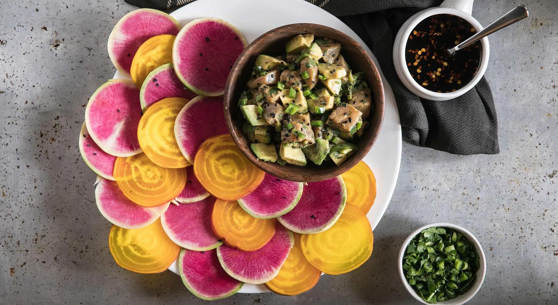 Serve over rice, with tortilla chips, wakame salad, or thinly sliced radishes Garnish with extra cilantro and scallions.