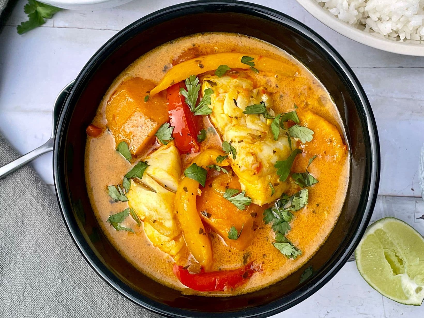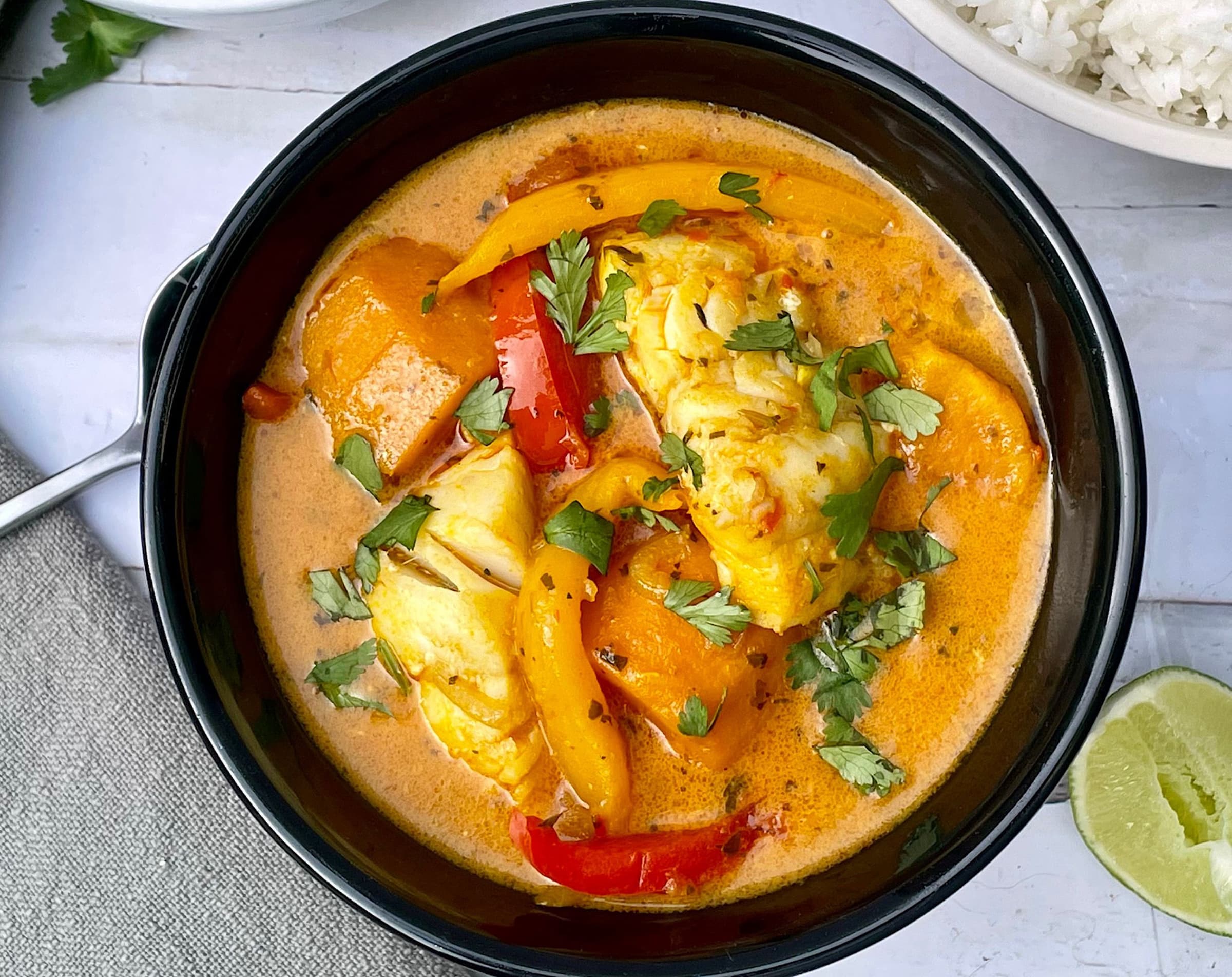 This easy recipe is loosely based on the famous Caribbean fish stew and substitutes turmeric and paprika for the more traditional achiote (also known as annatto). Cilantro stems — too often underused and underestimated — and spicy habaneros pack a punch and depth of flavor in the curry paste. This version is fairly mild, but you can increase or decrease the amount of habanero chile depending on your spice tolerance.