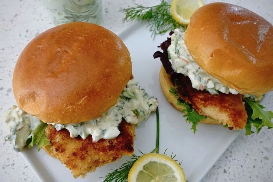 These German fish sandwiches have crispy fish, a classic pickle and egg remoulade, and fresh greens.