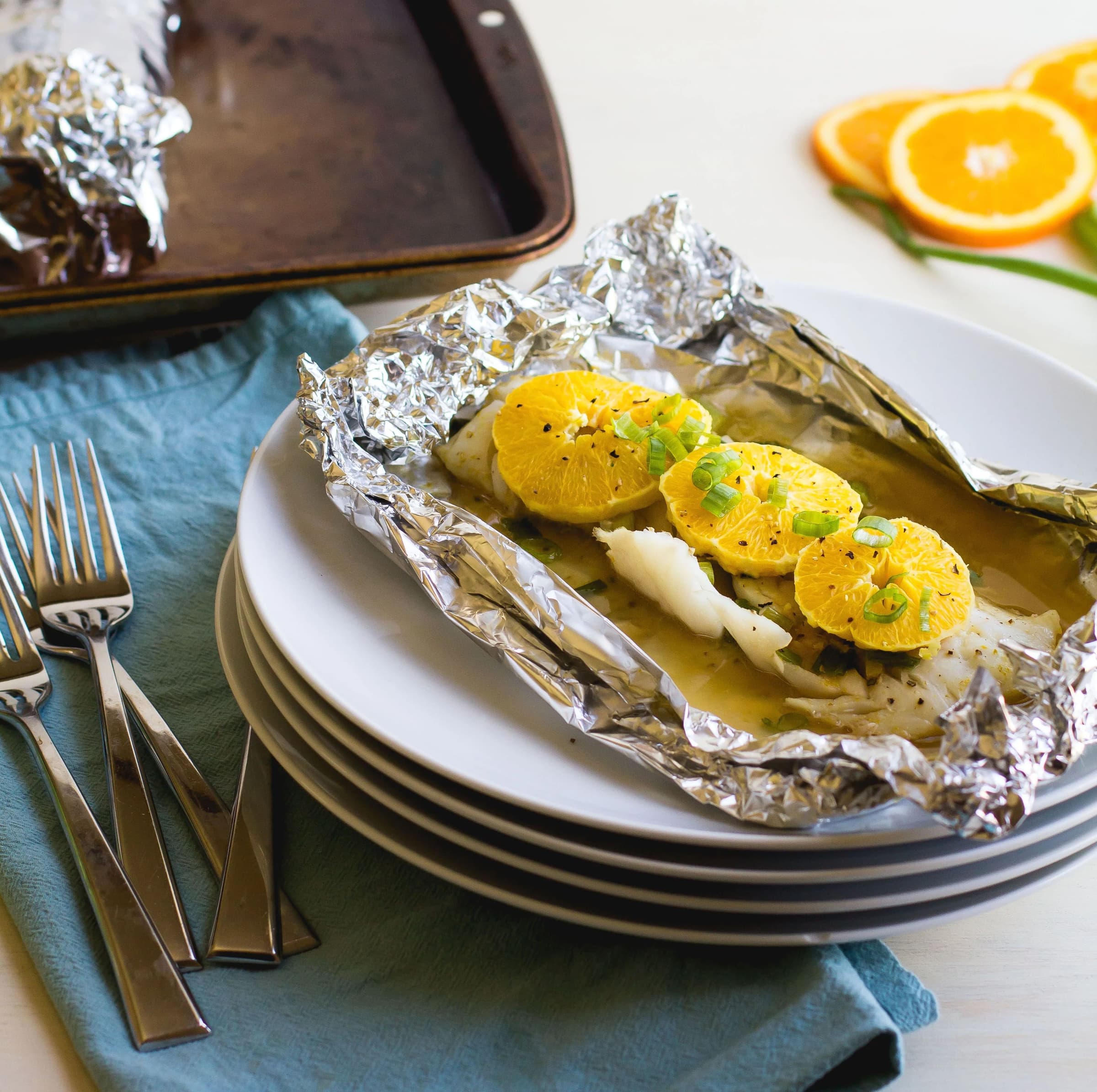 Top each fillet with a 3-4 orange slices. Fold the ends of the foil together tightly, making sure the packets are completely sealed. Place them on a baking sheet.