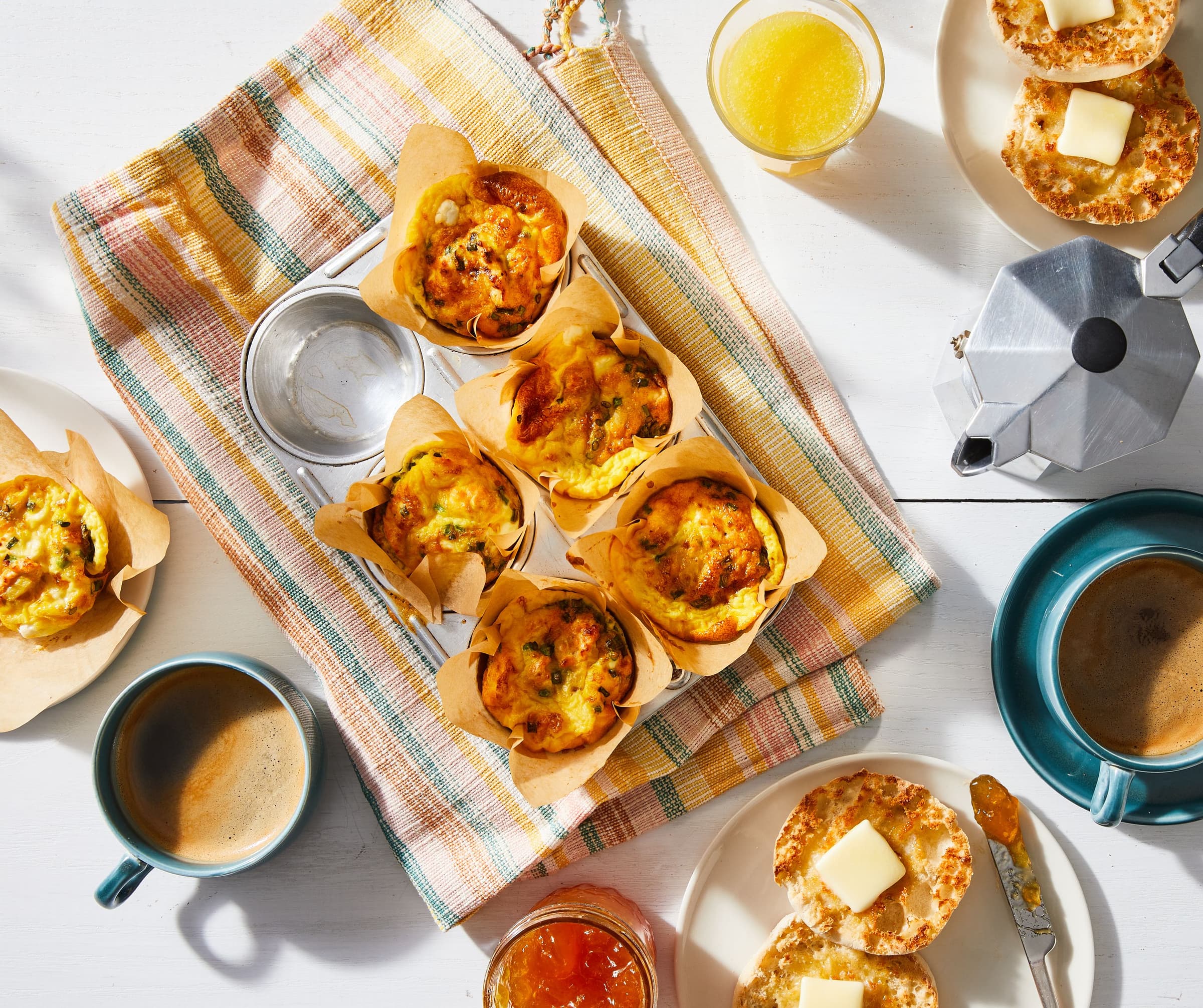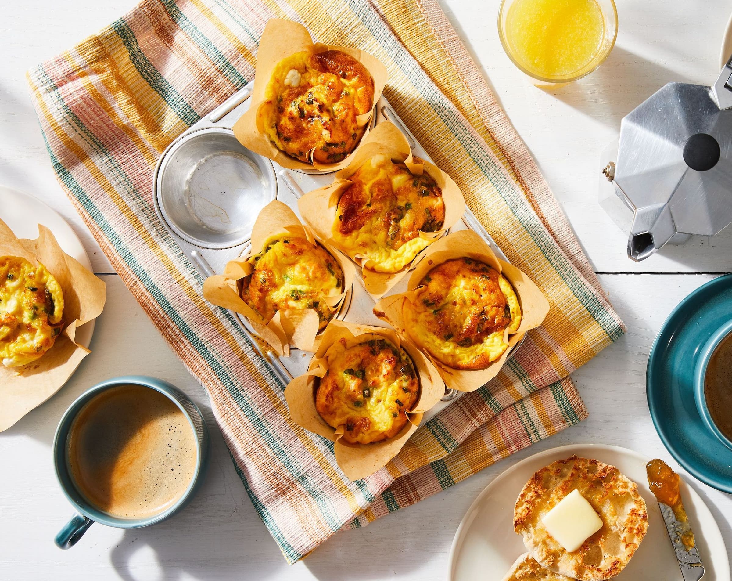 Breakfast, lunch, or dinner, serve these frittatas with Bloody Marys, mimosas, coffee, or sparkling water.