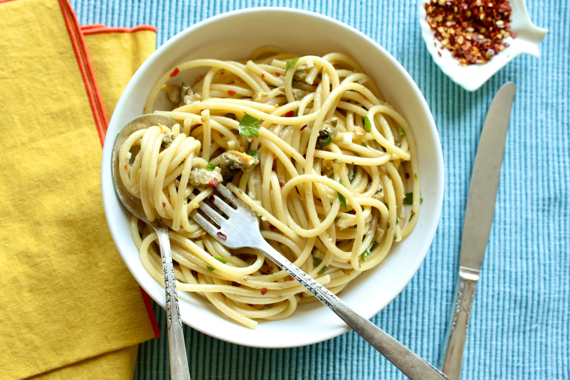 When clams are on the menu, there’s nothing more iconic than linguine with white clam sauce. Redolent with garlic, white wine, red pepper flakes, and briny fresh clams, this classic checkered tablecloth staple never fails to satisfy even the most finicky eaters. Serve it with a chilled glass of whatever wine you used to build the sauce, and watch the food disappear.