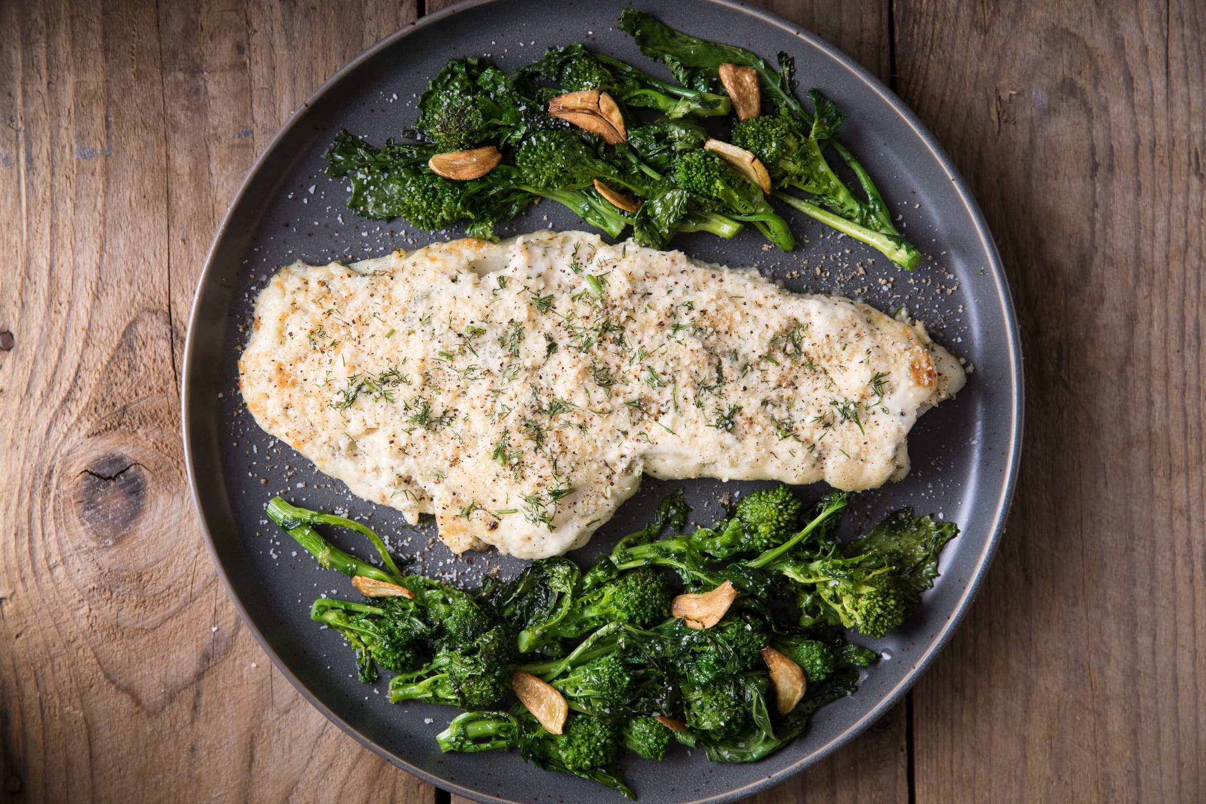 Sprinkle garlic slices over the broccolini and serve alongside the rockfish