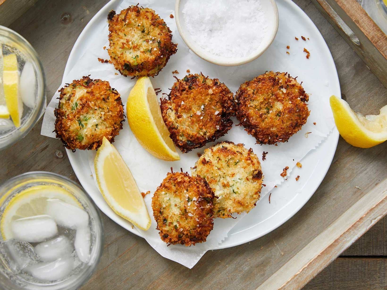 Heat ¼ inch oil in a large skillet over medium-high heat. Fry the cakes, turning once, until golden all over, 5 to 6 minutes. Drain on paper towels, sprinkle with salt, and serve with lemon wedges.