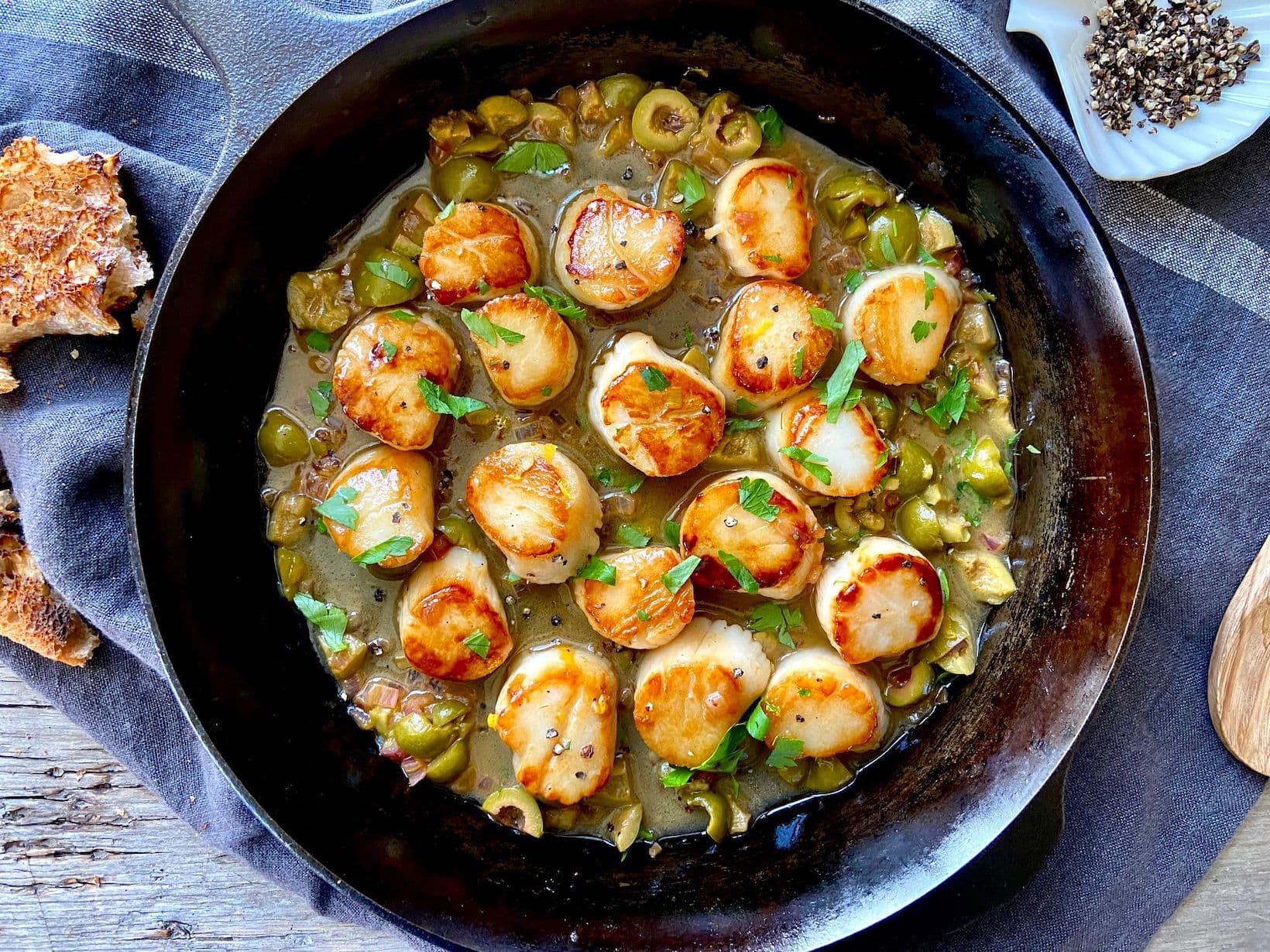 Sea scallops are luxuriously tender and sweet. Here, they’re seared to golden perfection and finished with lemony brown butter sauce. Olives add a mild brininess, but for more punch, add a tablespoon of drained capers.