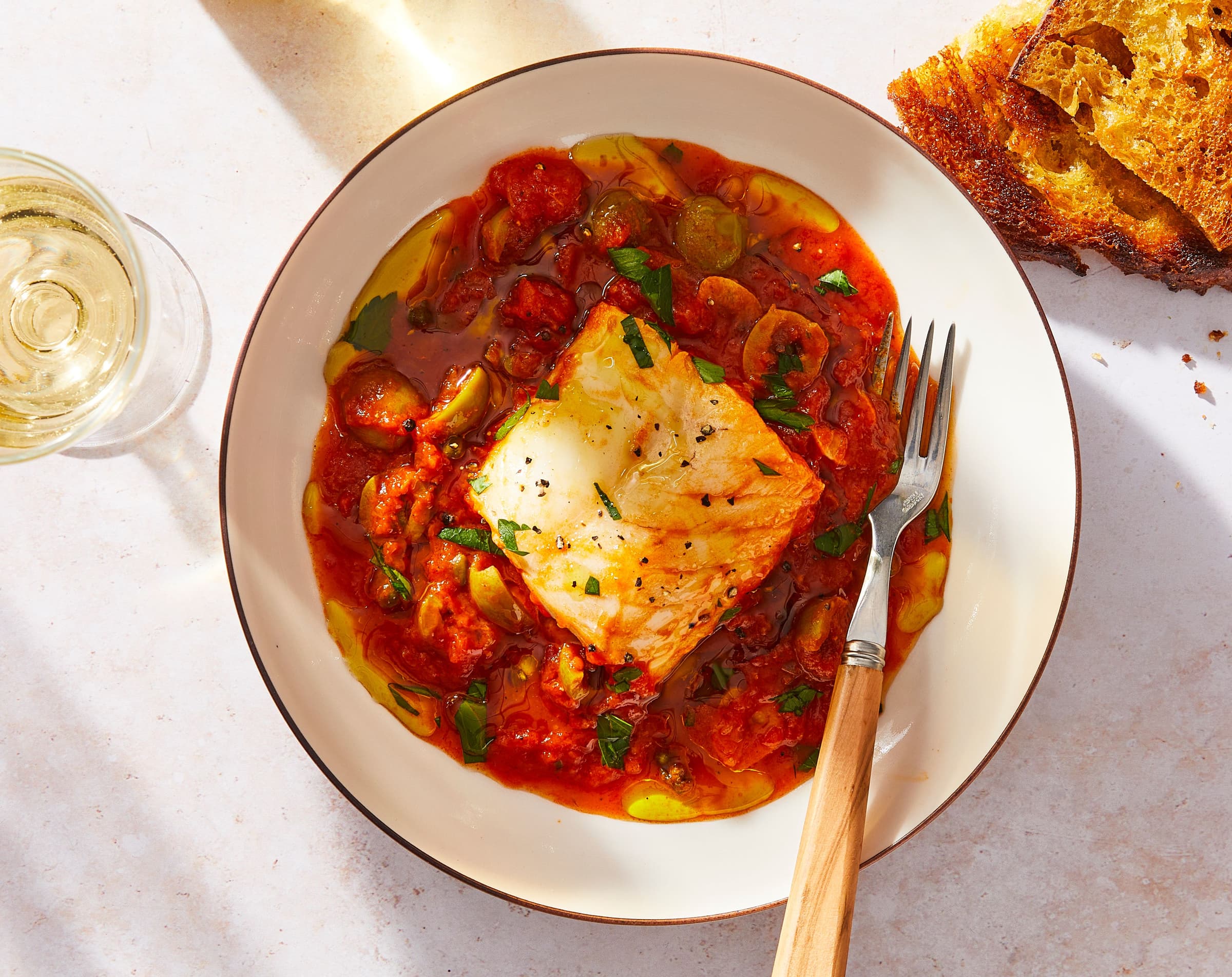 For an easy recipe refresh, serve leftover fish and sauce with cooked pasta. For something a little more creative, turn leftovers into a seafood soup by adding a bit of broth, cooked orzo or ditalini, and frozen peas.