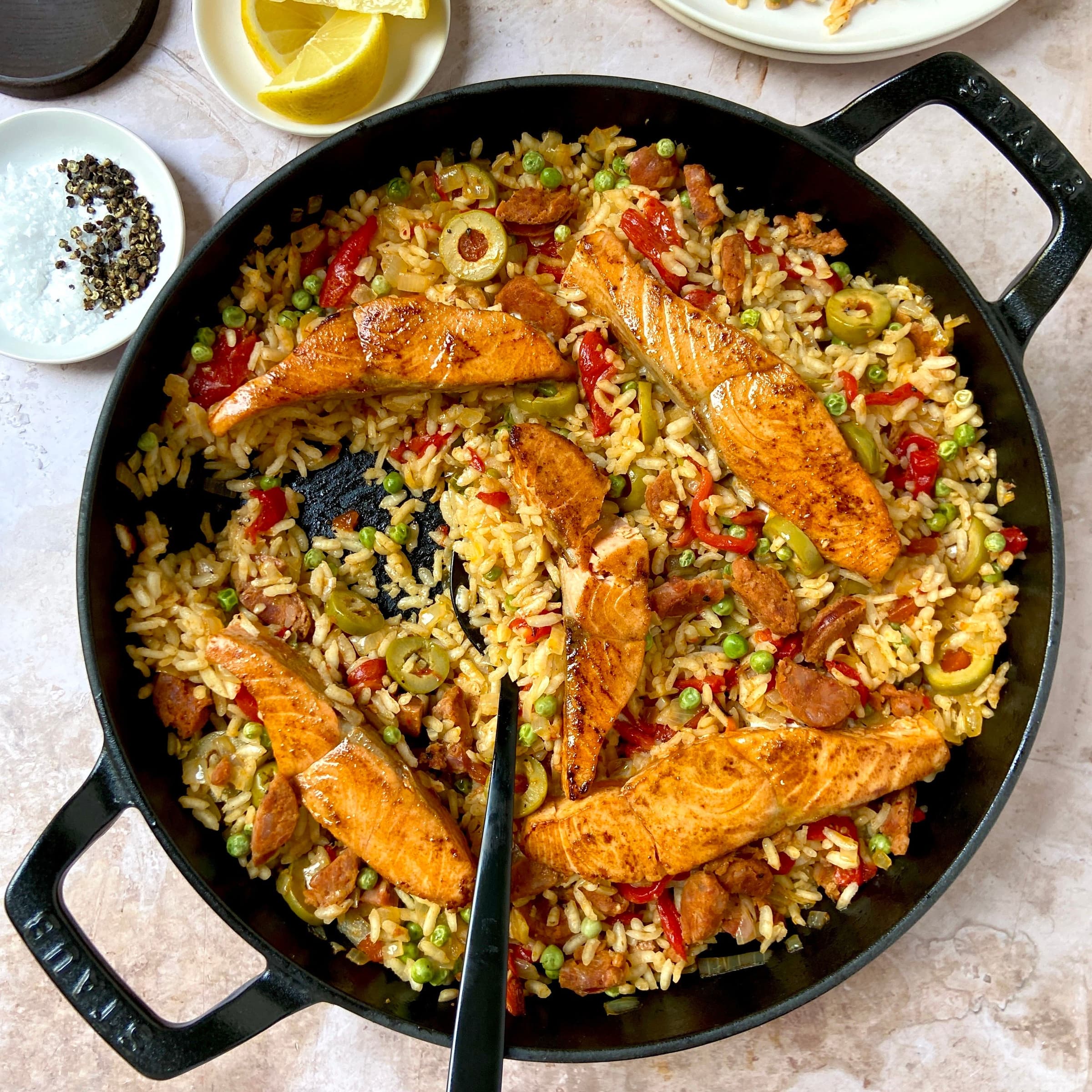 Paella is a classic Spanish rice dish that uses short grain bomba rice, sometimes labeled valencia, and is cooked uncovered over an open fire which adds a smoky, rich flavor. This simple one-pot version, using whatever rice you have on hand, is covered with a lid and cooked on the stove top, making it accessible year round. Chorizo and smoked paprika are classic ingredients, but entirely optional, depending on your diet and your pantry. Sweet paprika is usually on hand and is equally delicious.