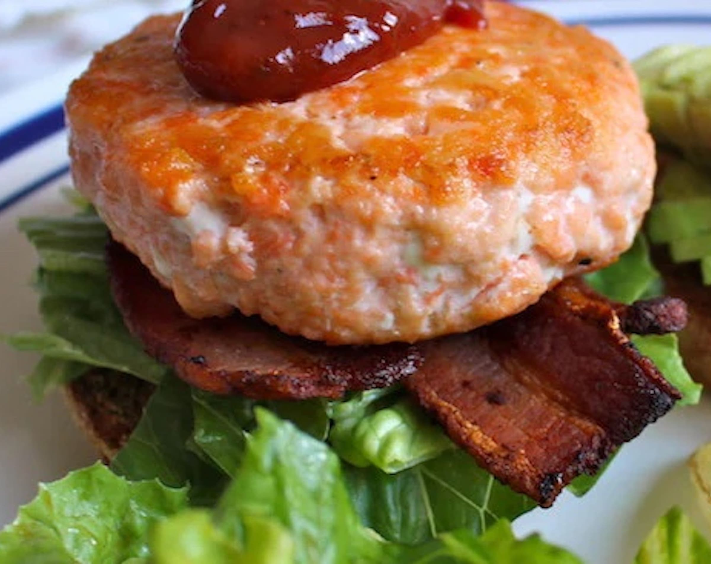 1 pound salmon burger Available in Our Seafood Subscription Box