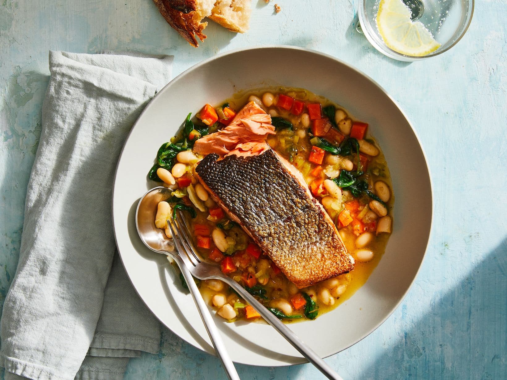 Nothing is as soothing on a chilly evening as a hearty, rustic bean soup. Top it with a piece of crispy-skin salmon for an extra dose of comfort. Curl up on the couch and enjoy!