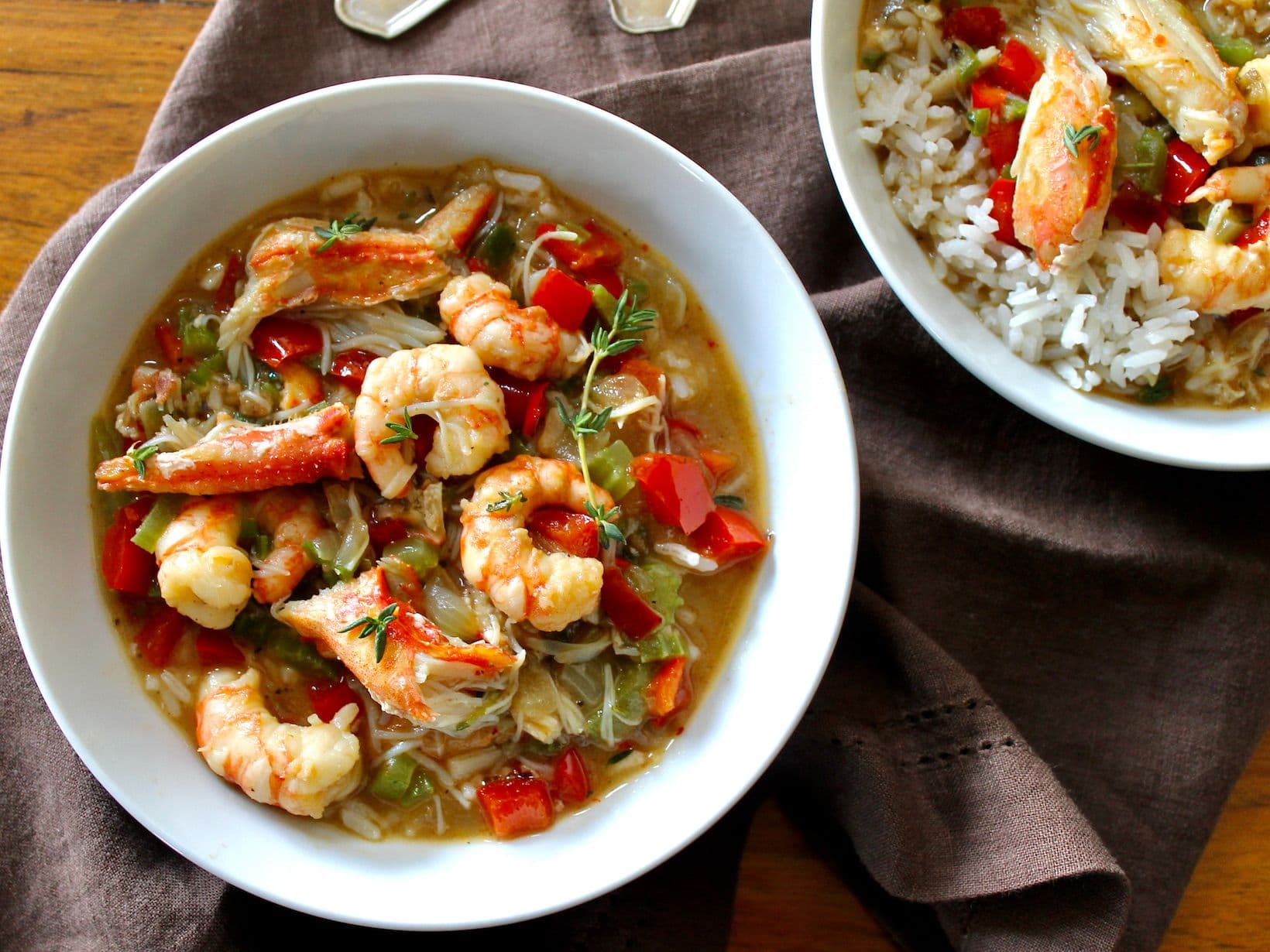 Etouffée, meaning “smothered” in French, is a classic dish from N’Awlins that uses seafood and shellfish, usually crab, crawfish, or shrimp from the Gulf. We use Alaska crab and spot shrimp in ours but hold true to the traditional preparation with the one exception: our roux cooks for 5 minutes not 60, making this a relatively quick and easy weeknight meal.