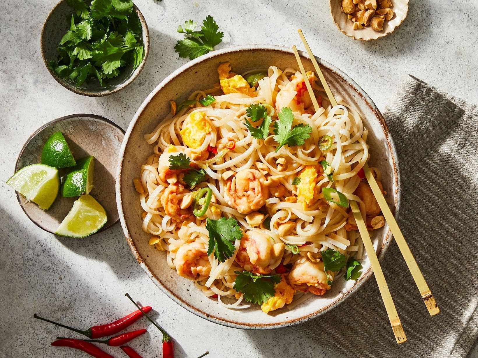 Pad thai is one of the most popular noodle dishes for a reason—it perfectly unites flavors (sweet, tangy, spicy, fishy) and textures (chewy, crunchy, tender) and is naturally gluten-free. This version, which uses readily available ingredients, comes together in less time than it takes to order from your local Thai restaurant.