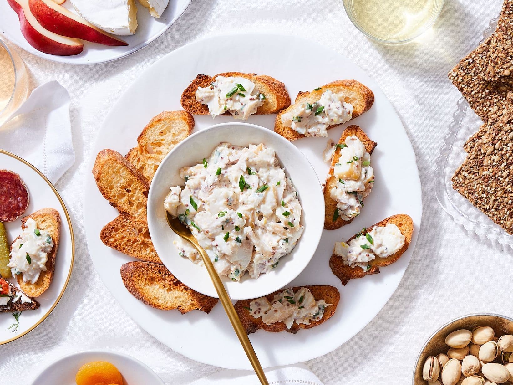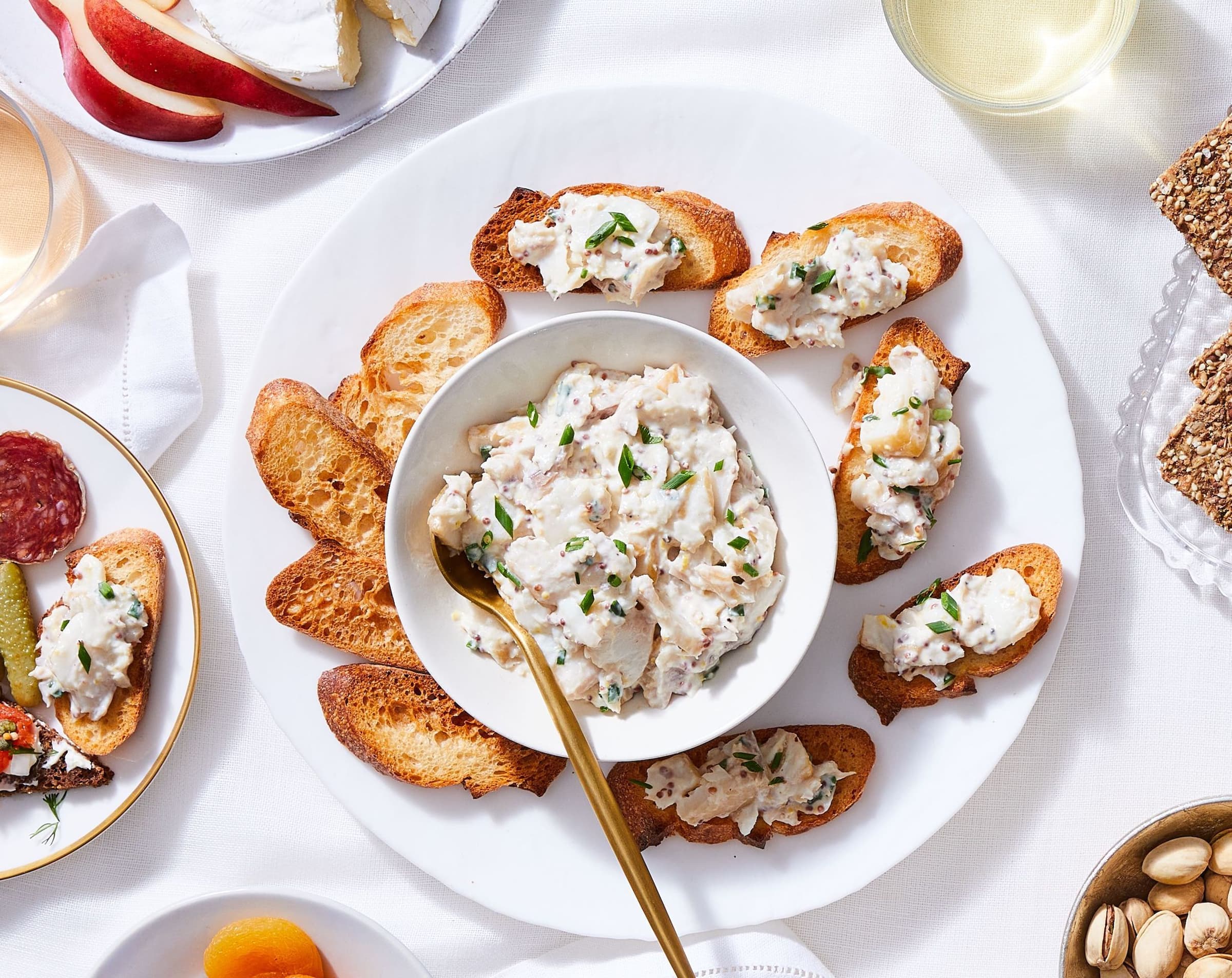 Arrange the toasted baguette slices on a platter and serve the smoked sablefish mixture alongside.