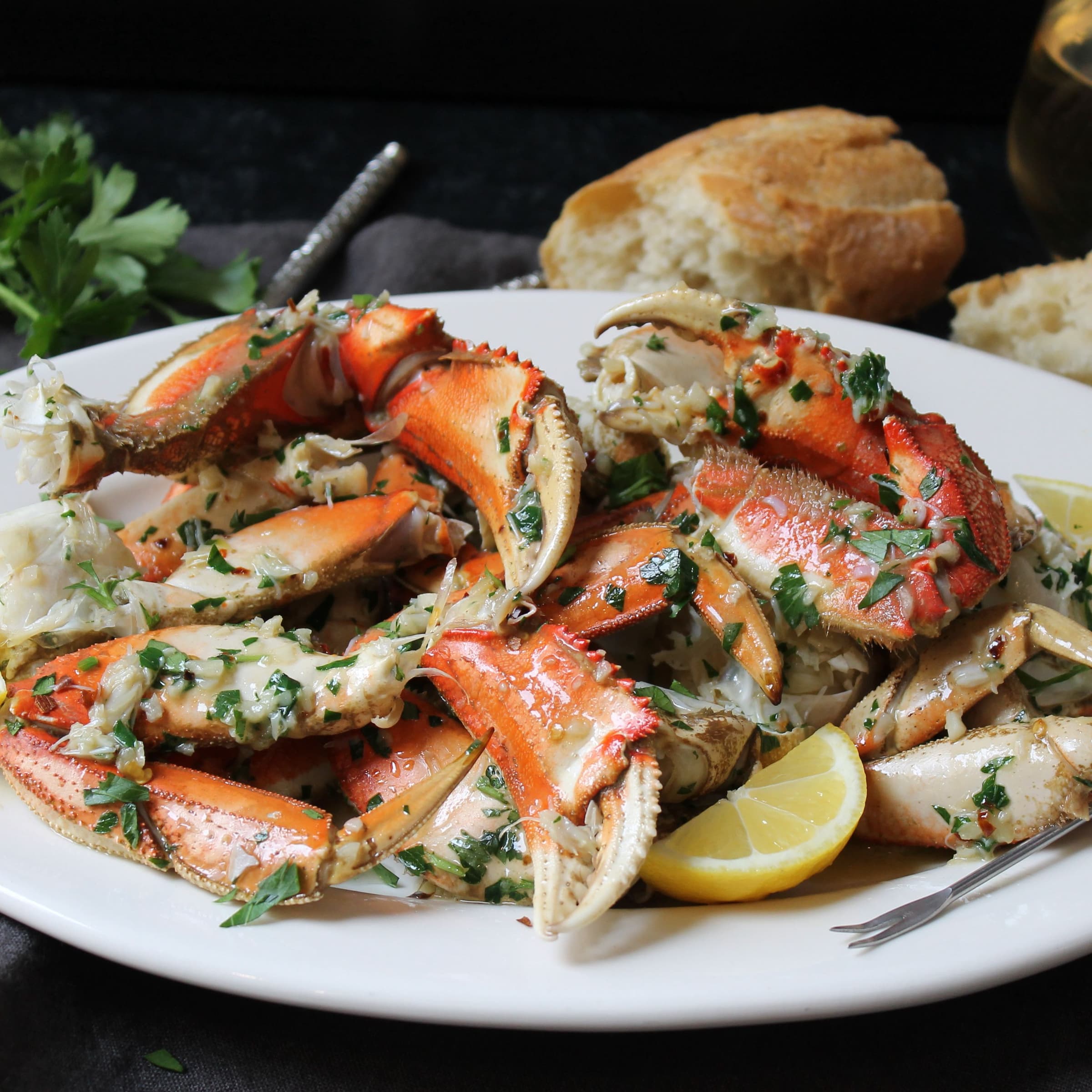 If garlic bread and crab boil had a baby, this would surely be it! Sweet Dungeness crab gets tossed in the classic garlic bread mixture — garlic, butter, and parsley — and served with crusty bread to soak up any extra butter. It is a bit messy, but feel free to use the bread as a tasty napkin!