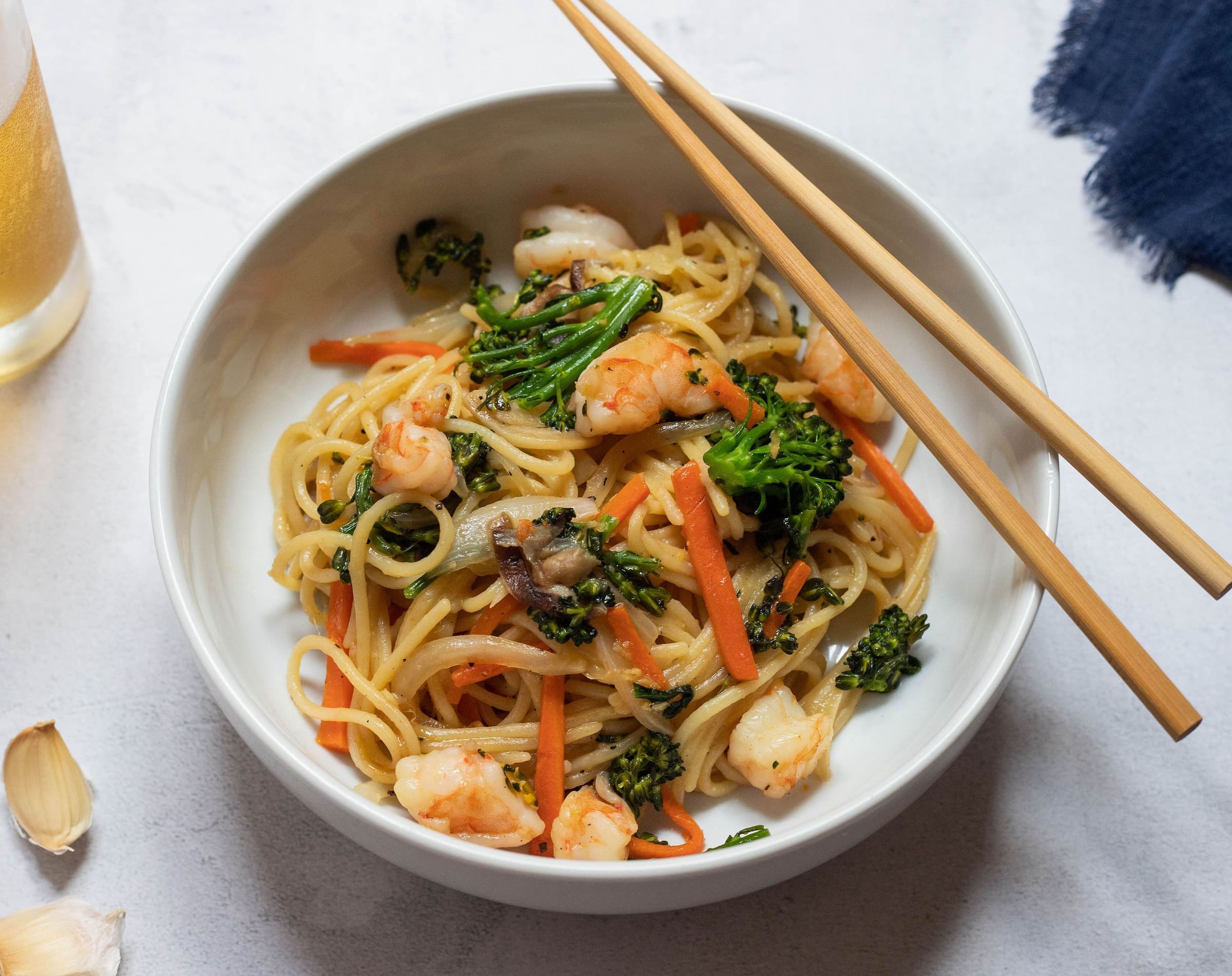 Gently cooking the vegetables all at once makes this stir-fry less intimidating and foolproof. Prep your ingredients ahead of time and cook the vegetables while the pasta water boils, and you can have dinner on the table in little over 30 minutes.