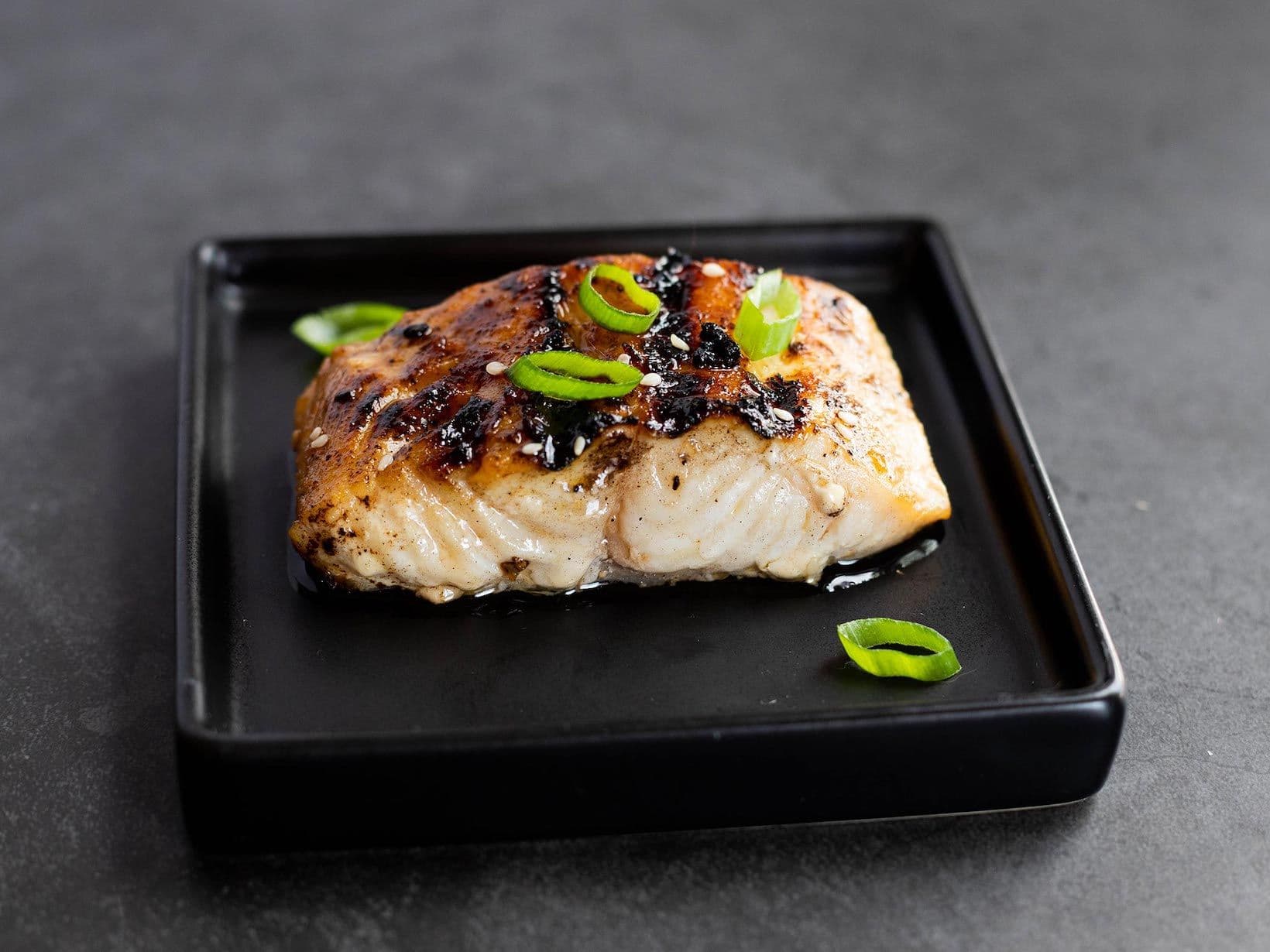 Preheat a gas or charcoal grill over medium heat. Place marinated sablefish fillets skin-side down on the grates. Cover and cook for approximately 12–15 minutes or until the fish begins to flake. Serve immediately!