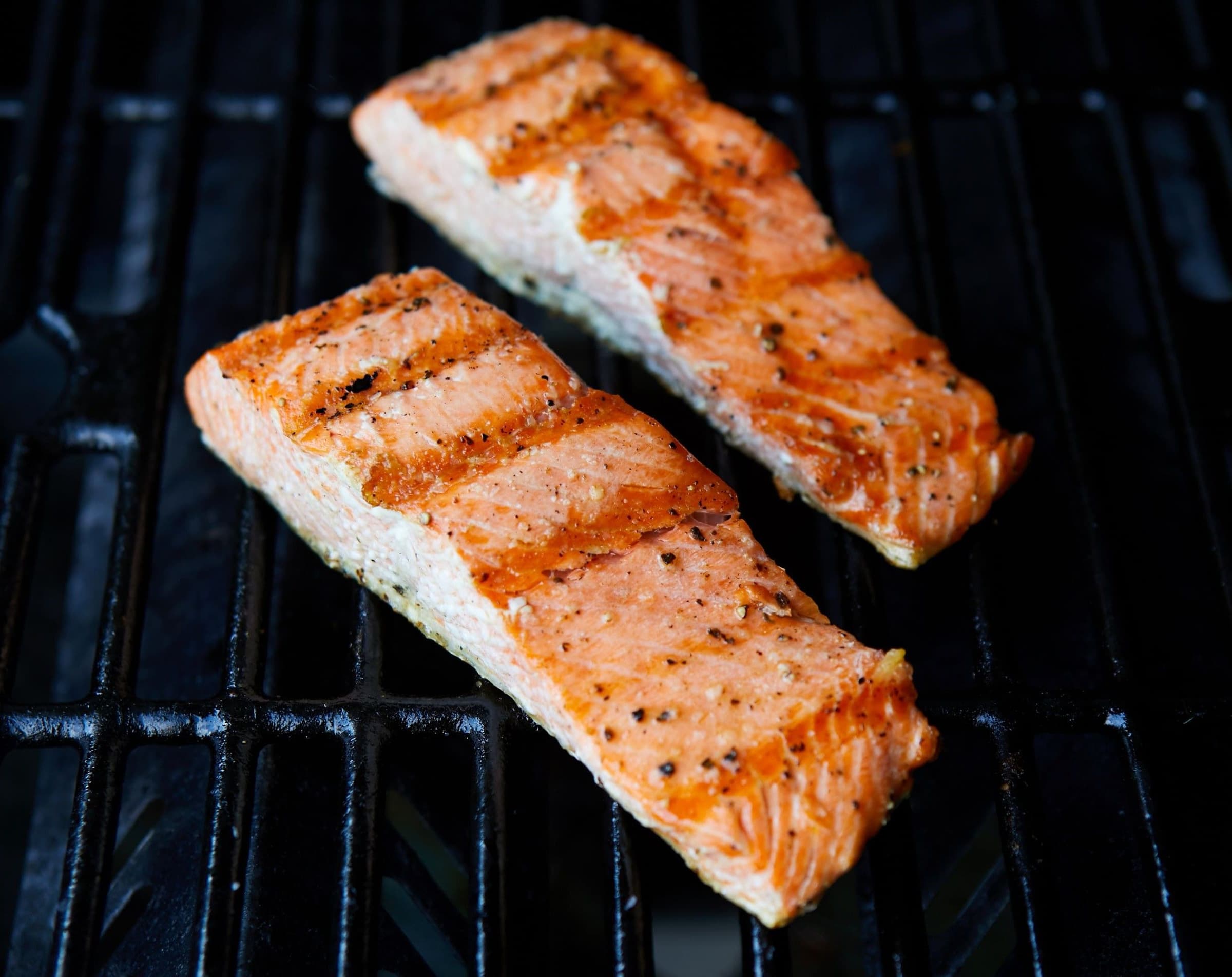 Place salmon fillet skin-side down on the grates. Cover and cook for approximately 12-15 minutes or until the salmon begins to flake. Serve immediately.