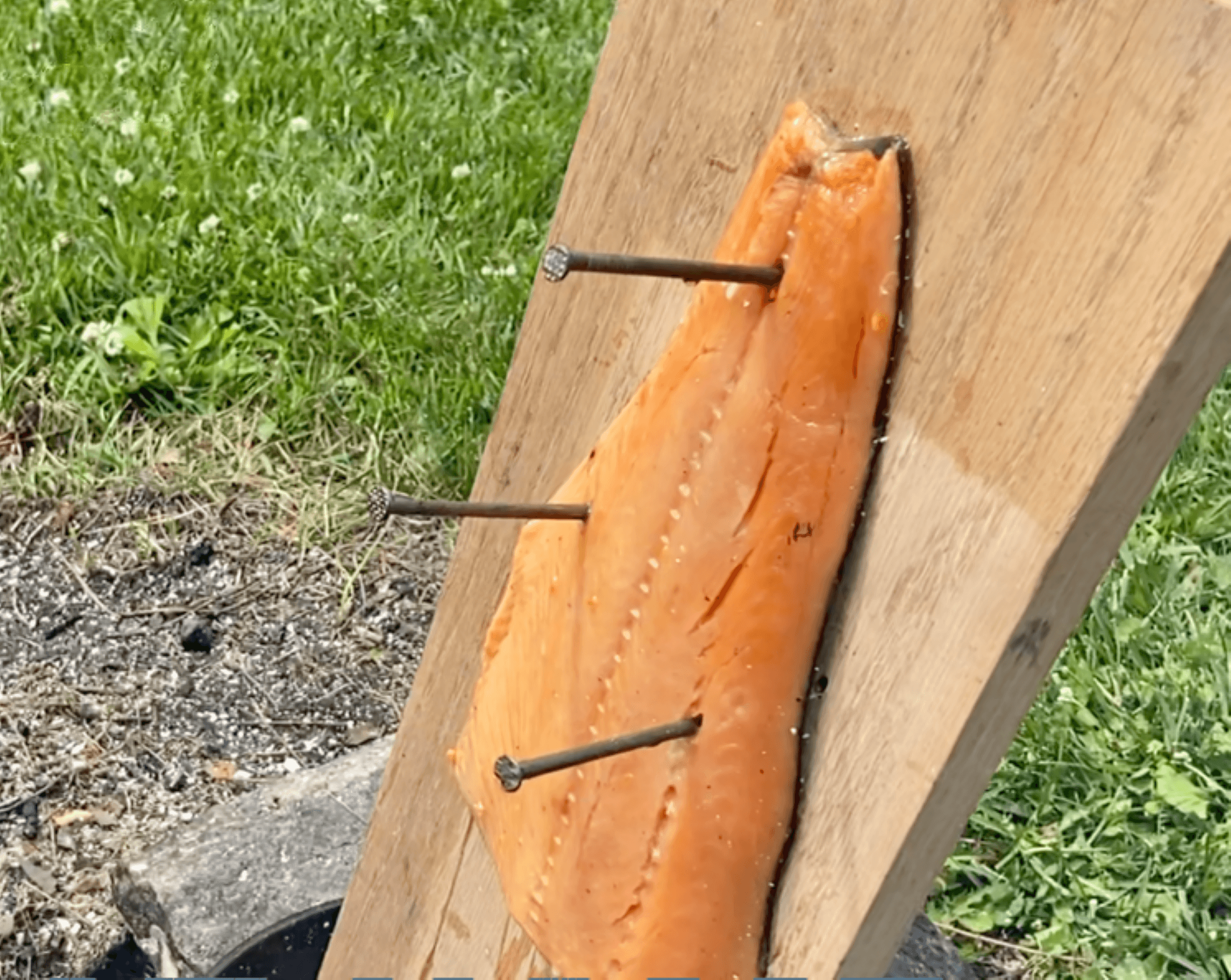When it's 99 degrees with 90% humidity, there is only one logical thing to do: Cook fish over an open flame! Loimulohi, pronounced low-e-mow-low-he, is a Finnish technique that translates to “blazed fish.” We are taking an ancient page from the Finns’ expansive understanding of fish cooking and making a tasty meal in our own backyard. We used a plank of wood, a few nails, a hammer, fire, and a perfect piece of fish. Now just throw all of that straight into the fire. No, not really, but you will quickly learn that controlling the fire and heat is the most challenging but also the most fun part of Loimulohi, second only to biting into perfectly smoked and slow-cooked wild salmon!