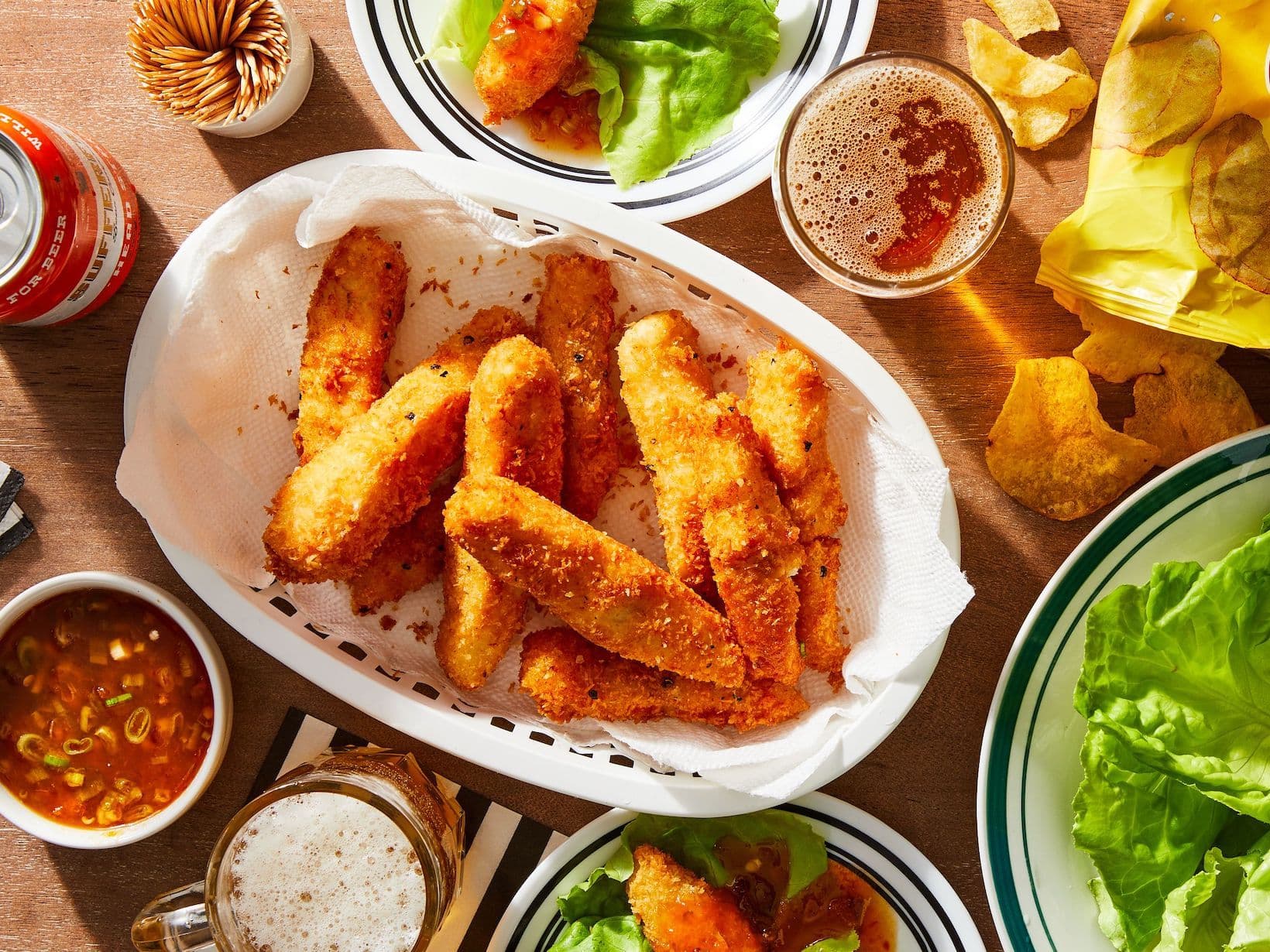 Place the fish fingers on a baking sheet and generously mist with cooking spray. Slide onto the center oven rack and broil until golden and crisp, turning once, about 2 minutes per side. For airfryer fish fingers, generously mist with cooking spray and airfry at 400°F for about 15 minutes.