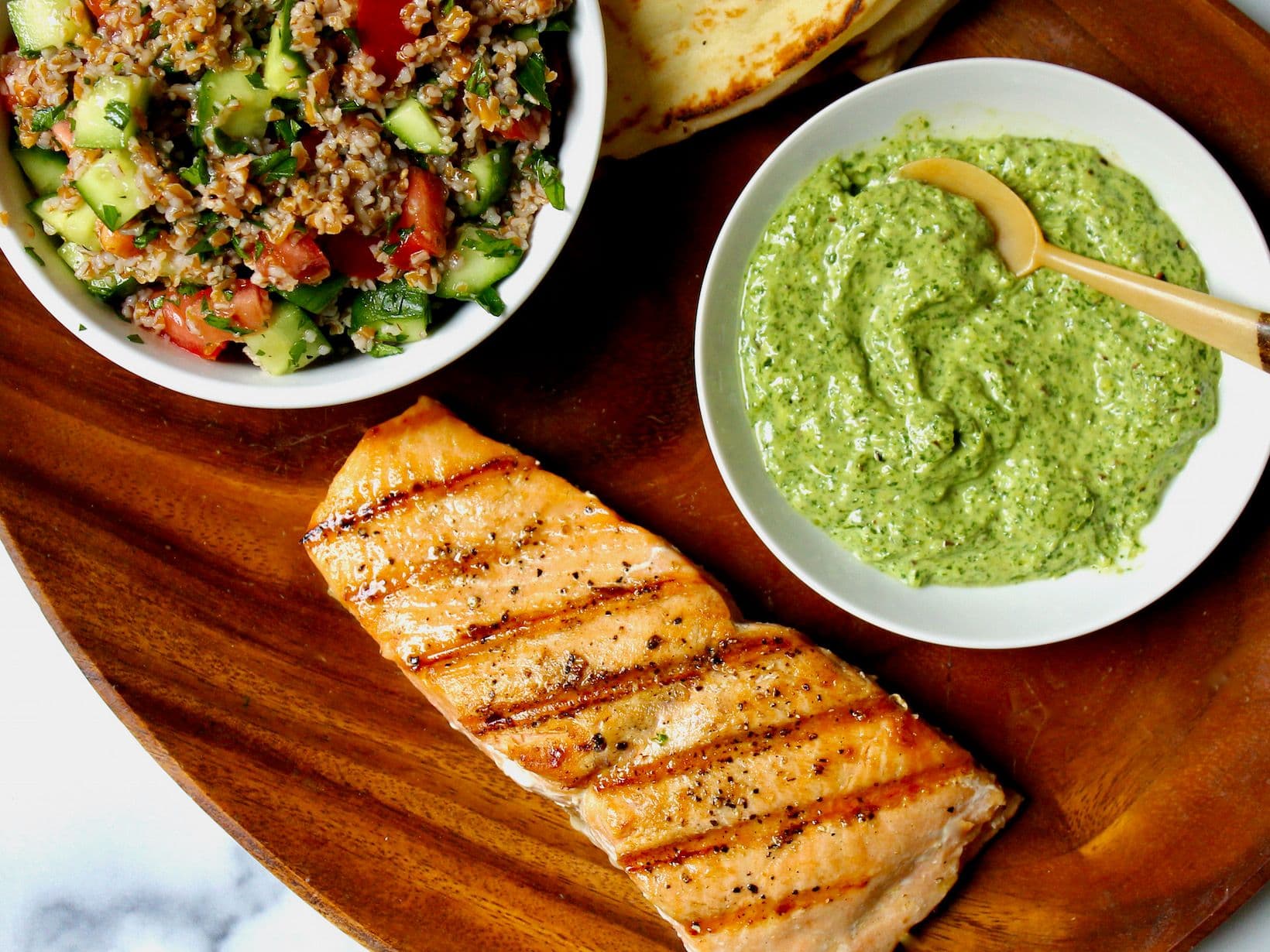 This sauce is great on fish, but you’ll find many other delicious ways to enjoy it — chicken, lamb burgers, grilled crusty bread, fried halloumi cheese, or even a super deluxe BLT.