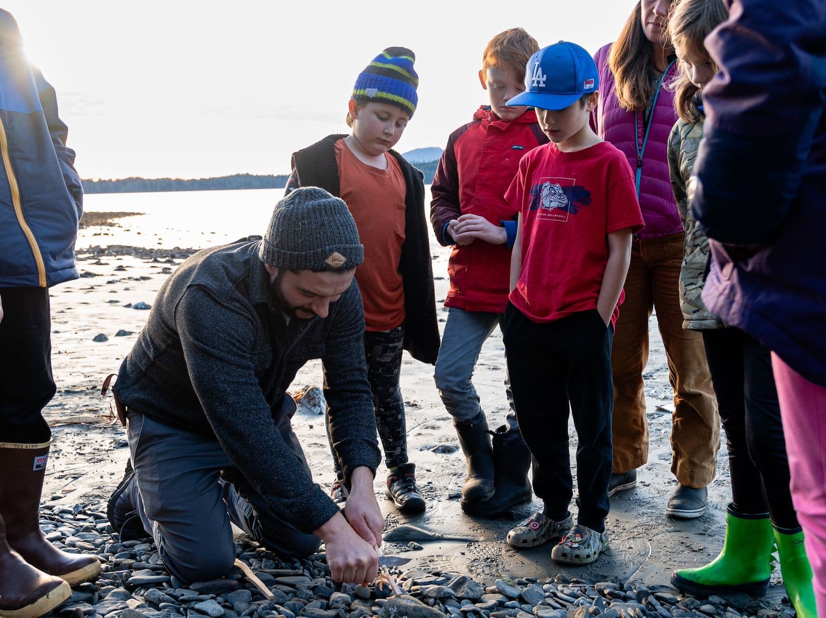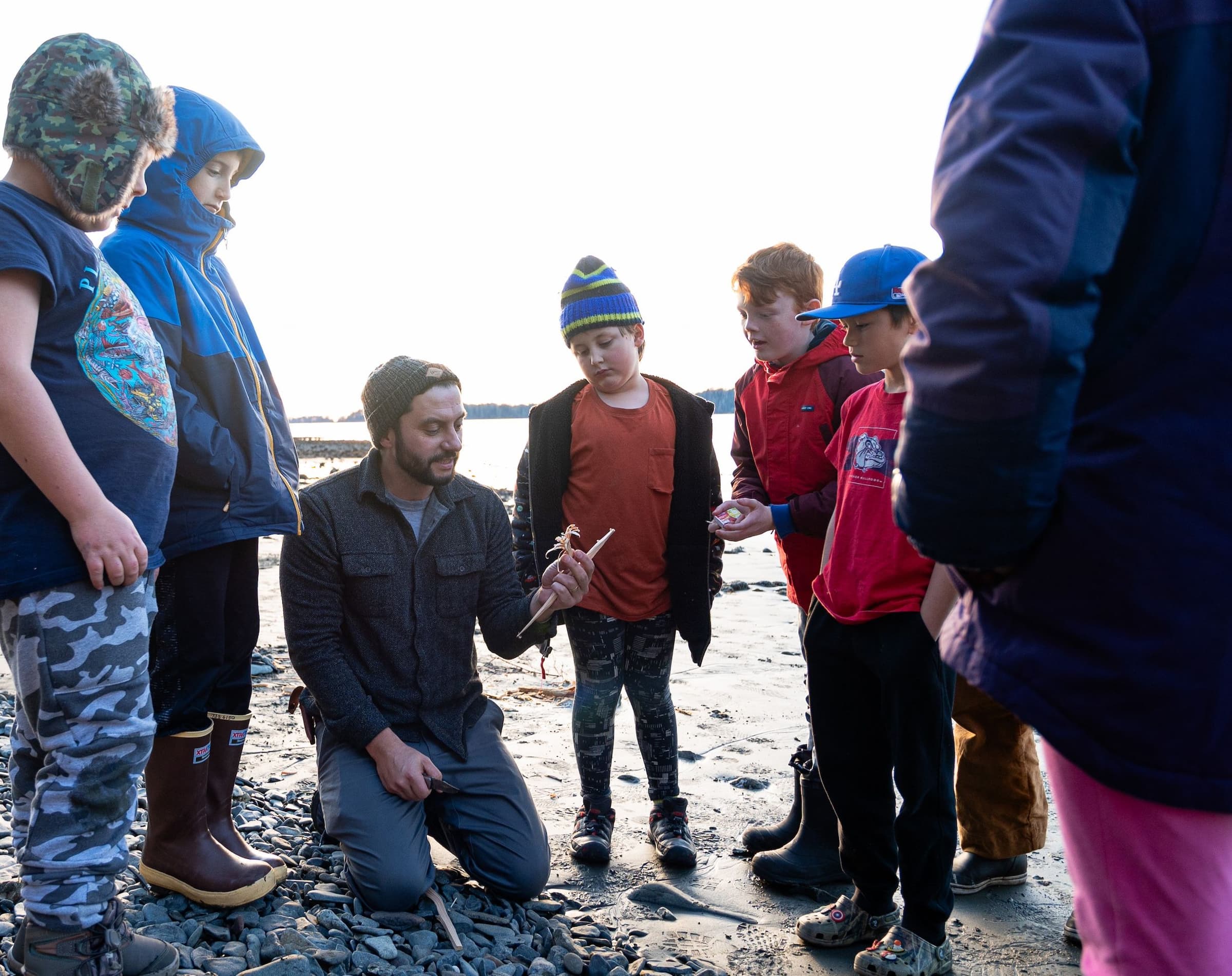 On a recent drizzly Tuesday afternoon, a troupe of XTRATUF rubber boot–wearing elementary school kids gathered around Sitka Seafood Market Vice President Marsh Skeele to listen to him explain the importance of dry kindling.