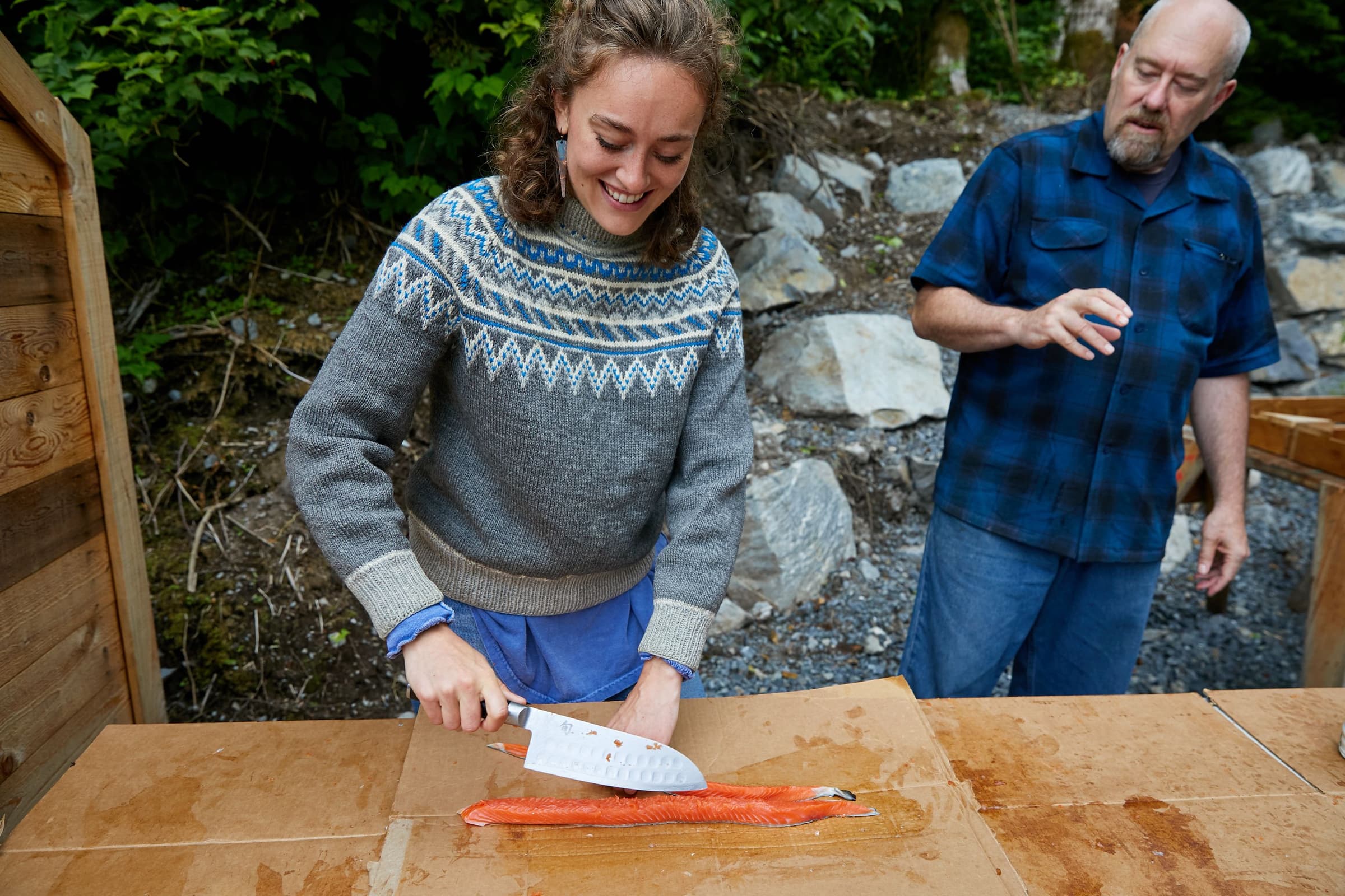 In addition to freezing, Alaskans prepare for long winter nights by smoking, canning, and even salting their summer and autumn harvests of fish, game, and berries. “I like to save a batch of ocean bright* keta to be smoked,” says Karl Jordan. When commercial fishermen save some of their catch for personal use, it's called a “home pack.” “Fishermen take pride in giving a fillet to a neighbor or an elder,” Karl says. “Sharing our home pack is a special tradition in the commercial fishing community.”