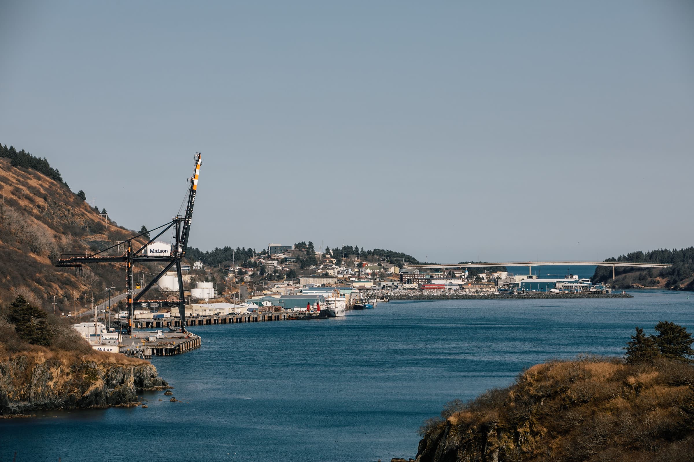 Kodiak is known for its big fisheries — home to the crabbers of Deadliest Catch fame and the massive trawlers that pull in hundreds of millions of pounds of pollock. Its waterfront tells the story of this industrial scale — towering cranes hoist frozen seafood containers, and trawlers over 200 feet long crowd the harbor. These giants of the industry dominate the landscape, dwarfing the smaller boats and processing plants that define places like Sitka.