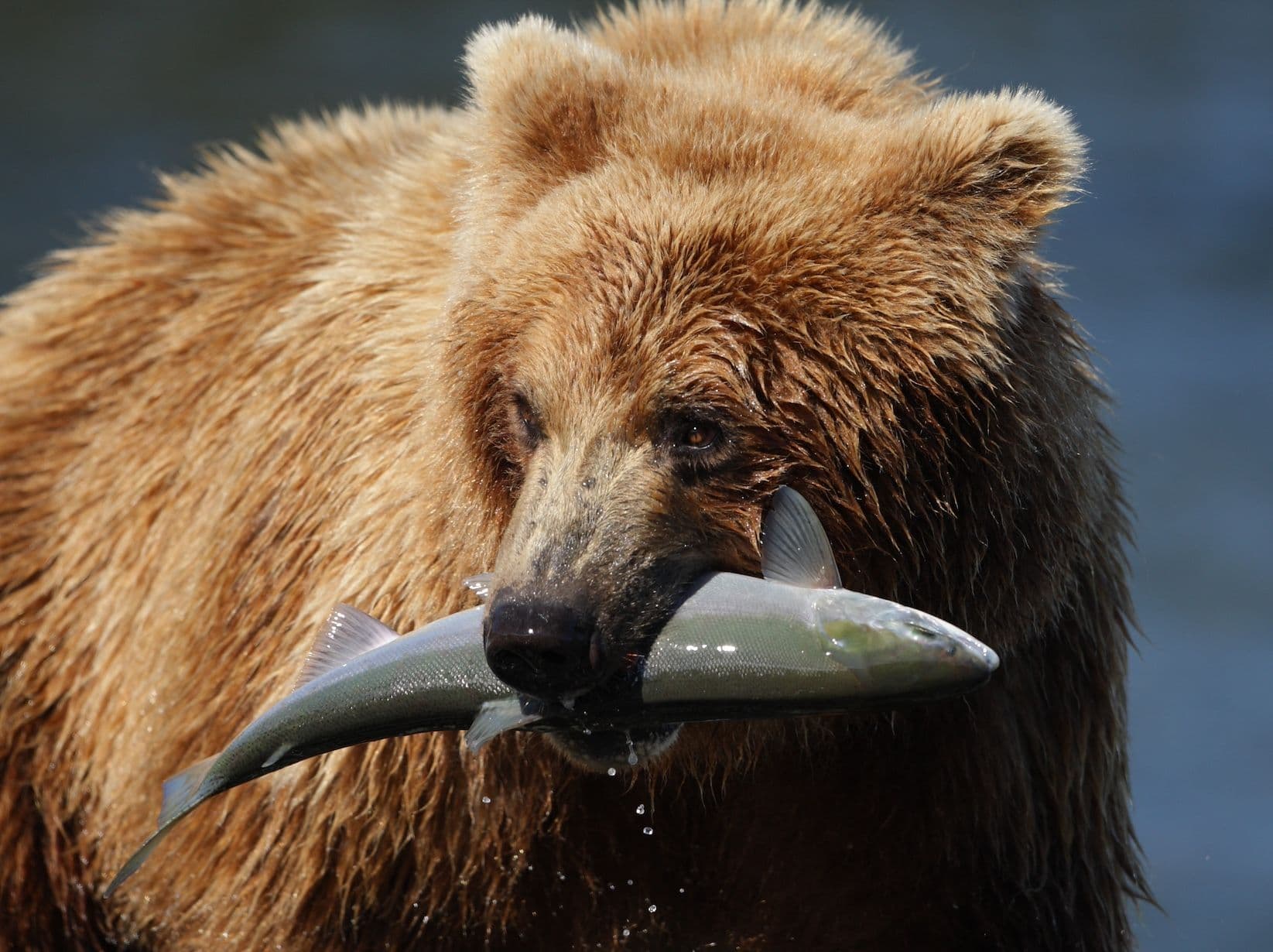 Once fully grown, packed with energy-rich omega-3 fatty acids for the journey upstream, salmon begin heading back to their natal rivers. They sense the Earth’s magnetic field and use it like a compass to home toward their region of origin. The last miles are guided by the unique chemical imprint of their natal stream as sediments wash out to sea. A small number will spawn in nearby rivers and streams — a behavior called “straying.” Straying is a vitally important characteristic of wild Pacific salmon. If a river is damaged by a mudslide or forest fire, that season’s salmon might be unable to spawn and the river could lose its fish. Thanks to straying, when cold, clear water returns, salmon from nearby systems begin to repopulate the river, and within a few years the run can thrive again.
