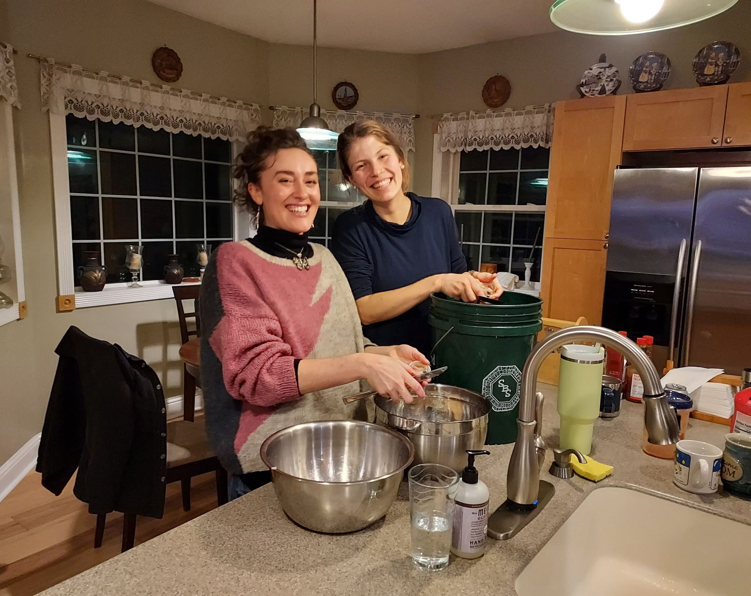 Greg stopped shoveling to turn his headlamp our way. “We should talk about how many clams you two can process.” Realizing how quickly we’d begun to fill the buckets, I lifted one to test the weight. We determined that in about 20 minutes, we’d gathered more than enough clams to keep us busy processing for the next few days.