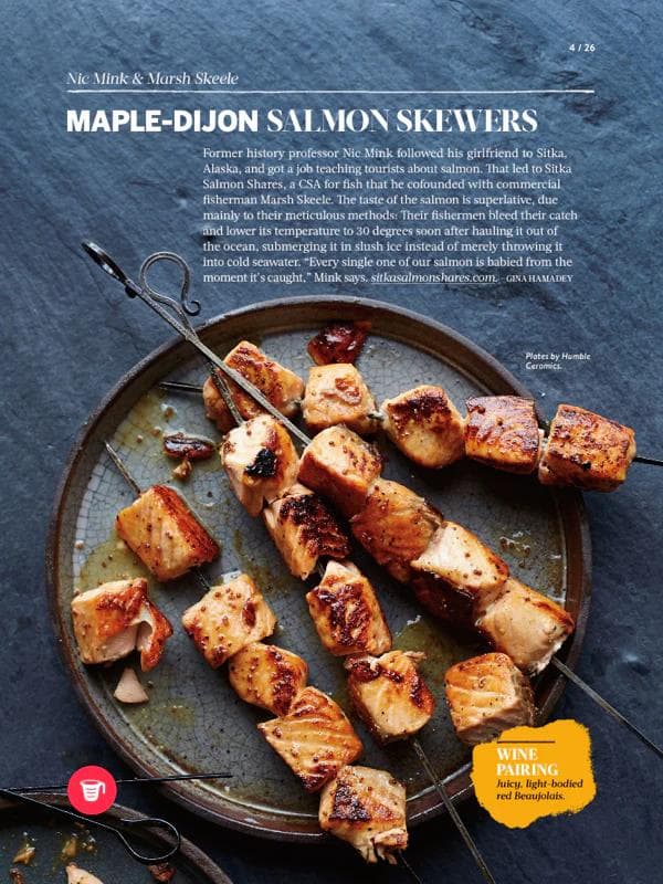 The article highlights a lovely Maple-Dijon Salmon Skewers recipe developed by Chef Ali Banks. It's a must-try! We recommend it to any new members who might be initially intimidated by cooking fish. These skewers make for an elegant and delicious treat but are simple to prepare. By letting Sitka salmon speak for itself and keeping it very simple, you can really taste the difference in fish that's been "babied from the moment it's caught." That difference is what Sitka Salmon Shares has been about since the beginning. We're thrilled that Food & Wine noticed!